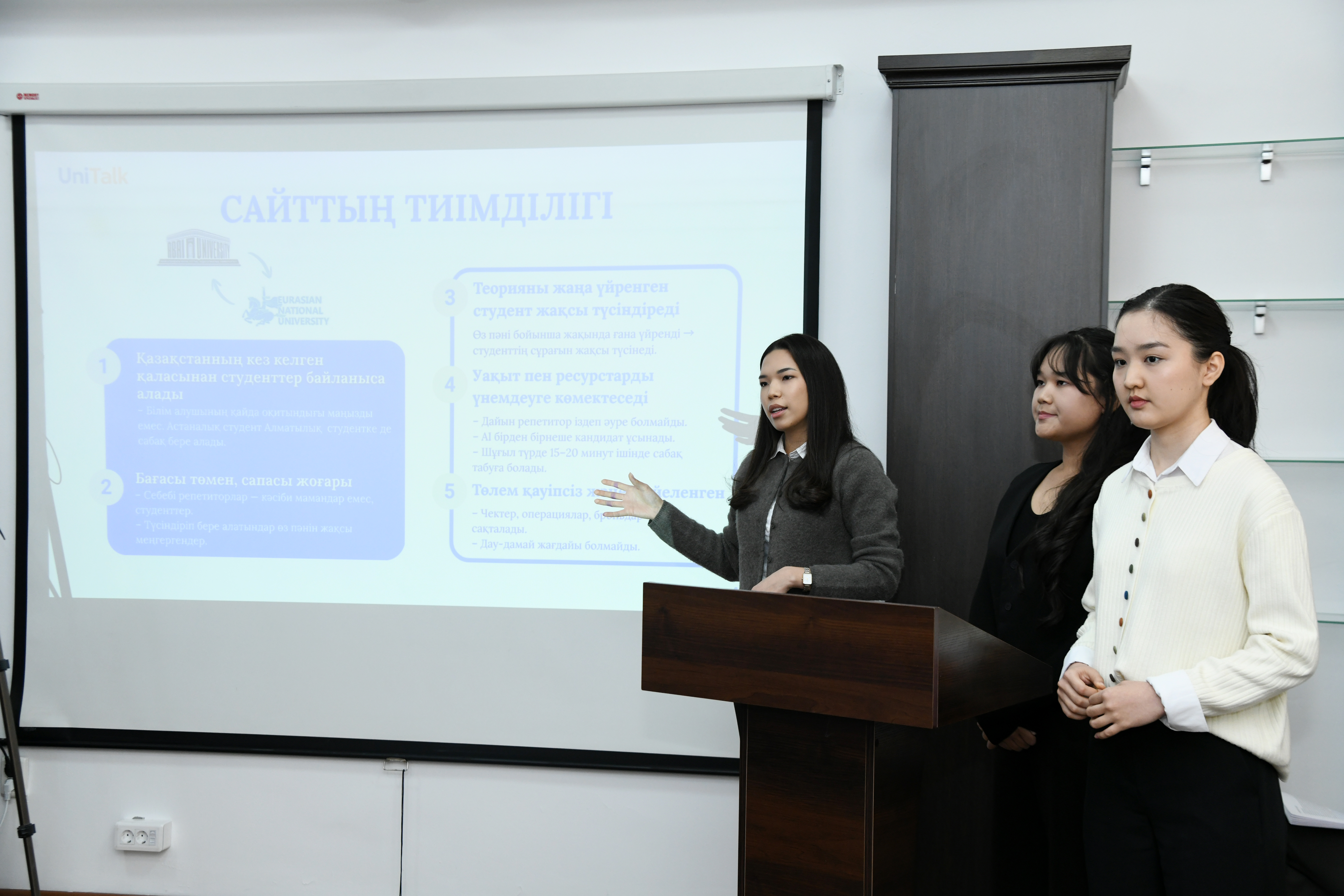 The Unitalk project aimed at improving the quality of education was also presented. Here students have the opportunity to find tutors in various subjects and choose the time of online classes. Not only certified specialists, but also students here can work as tutors for students. In the project, artificial intelligence prepares questions for differentiating the student is knowledge and determining the level.