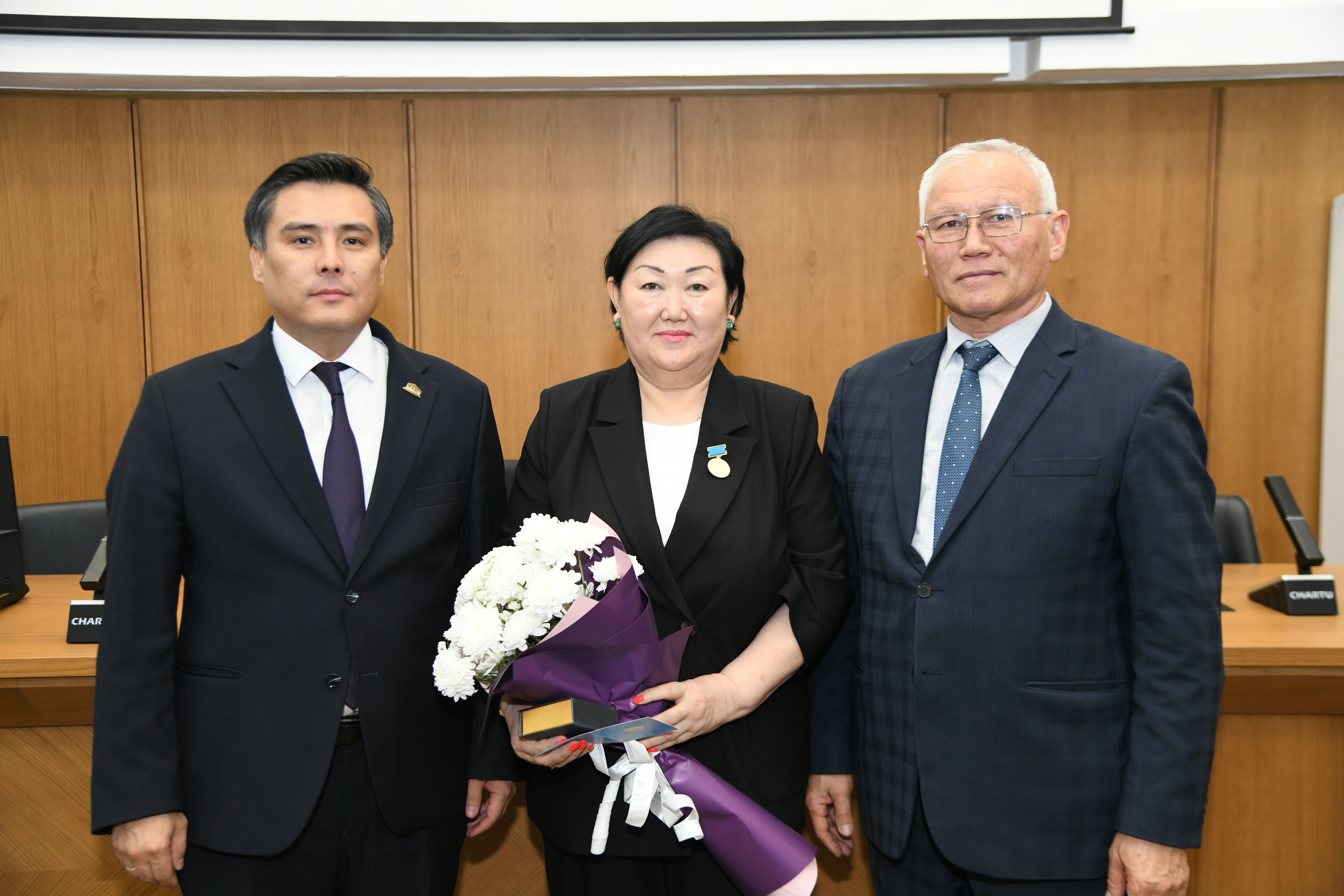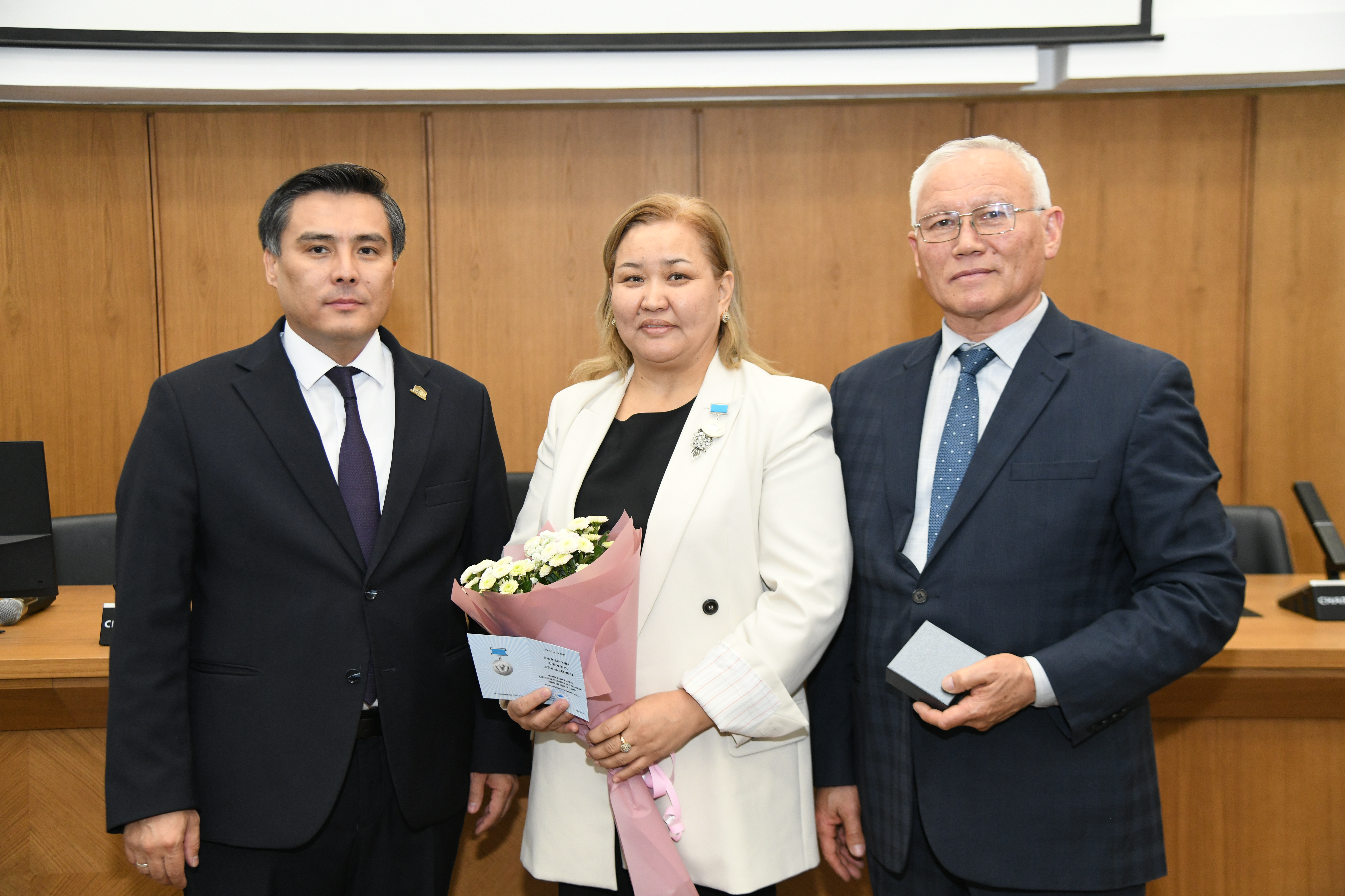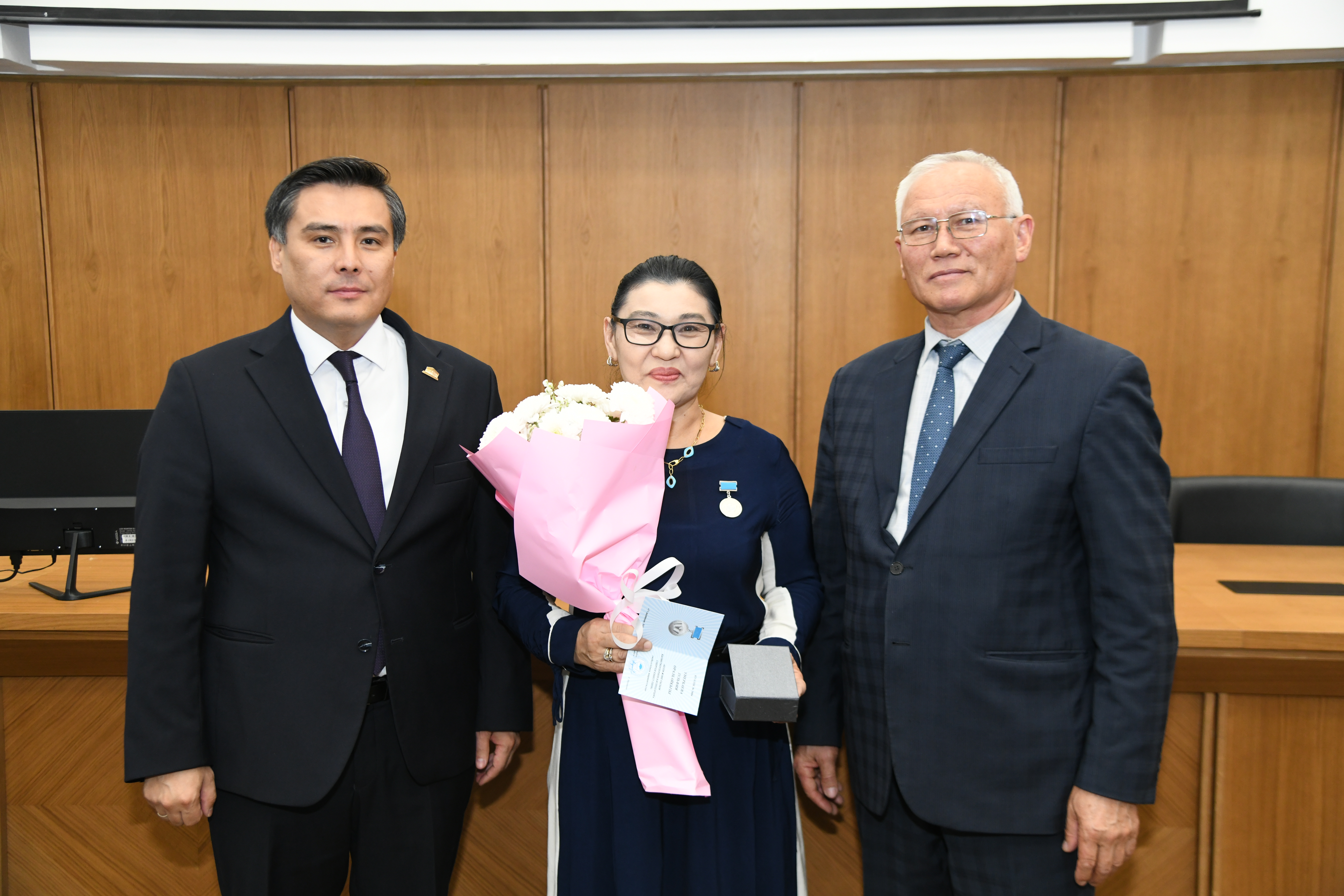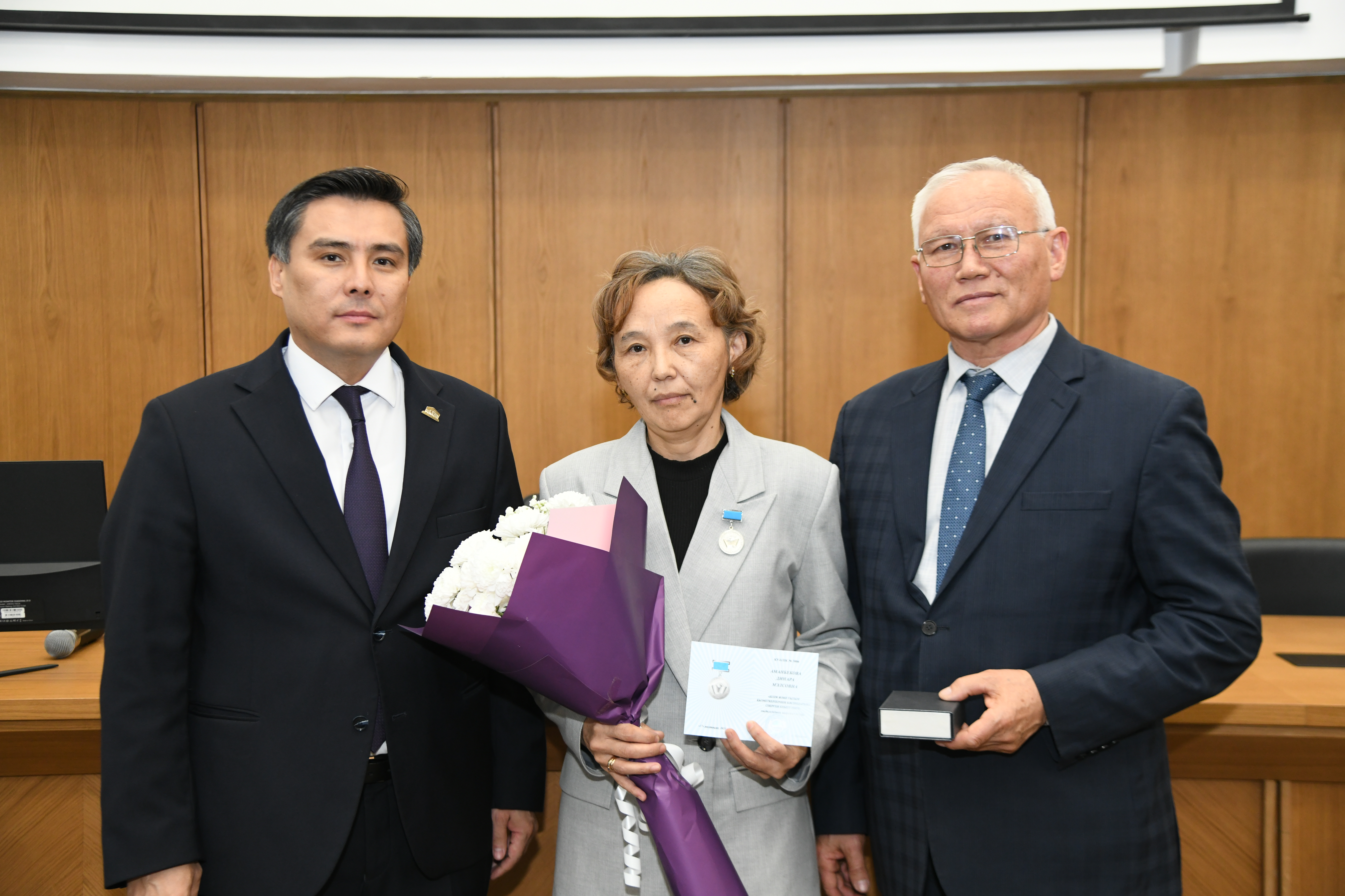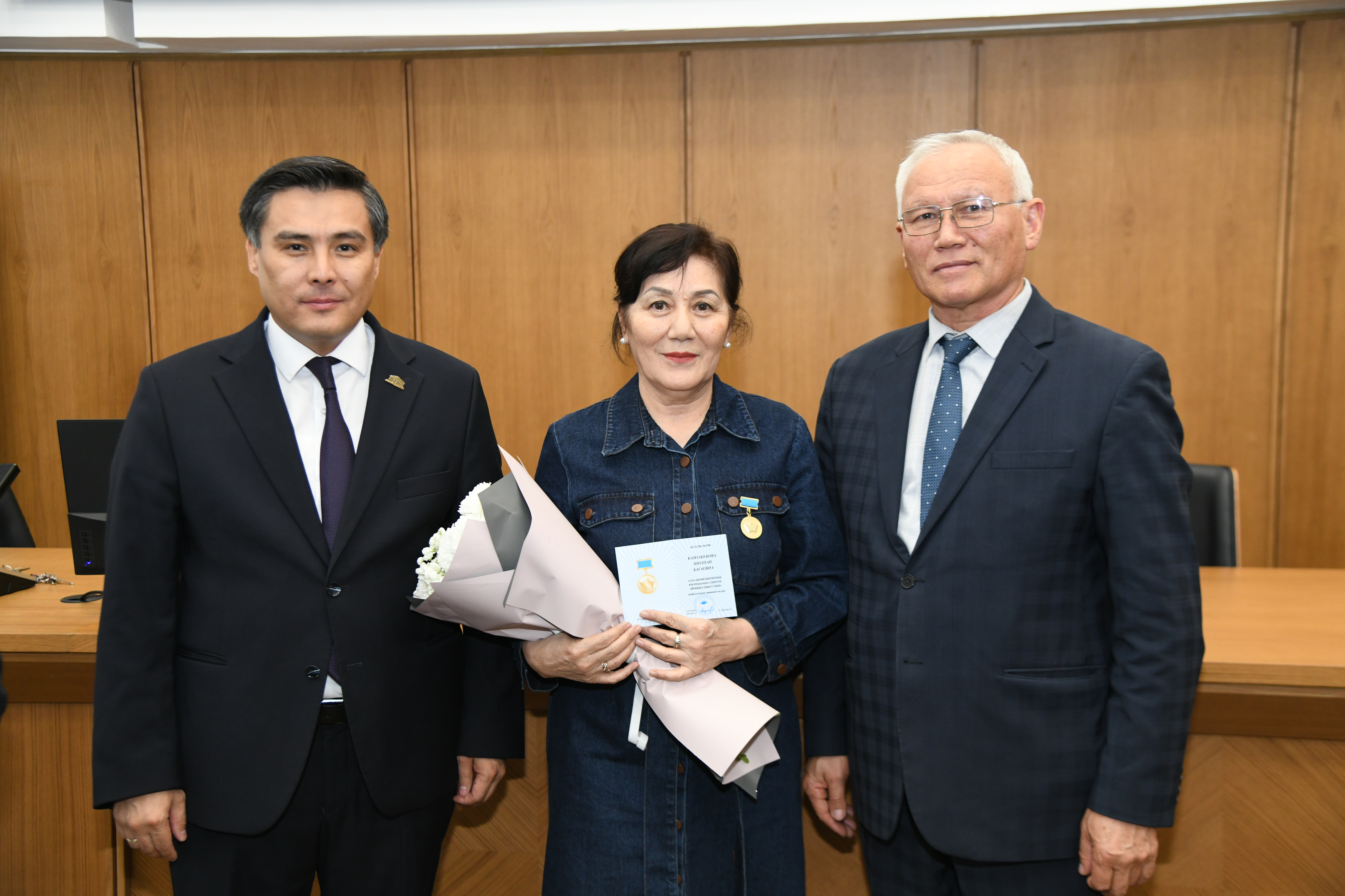 Today, a group of faculty members of Abai University were presented with institutional awards from the trade union organization. Based on the results of the year, employees who made a significant contribution to the work of the sectoral trade union were awarded badges and letters of appreciation.
