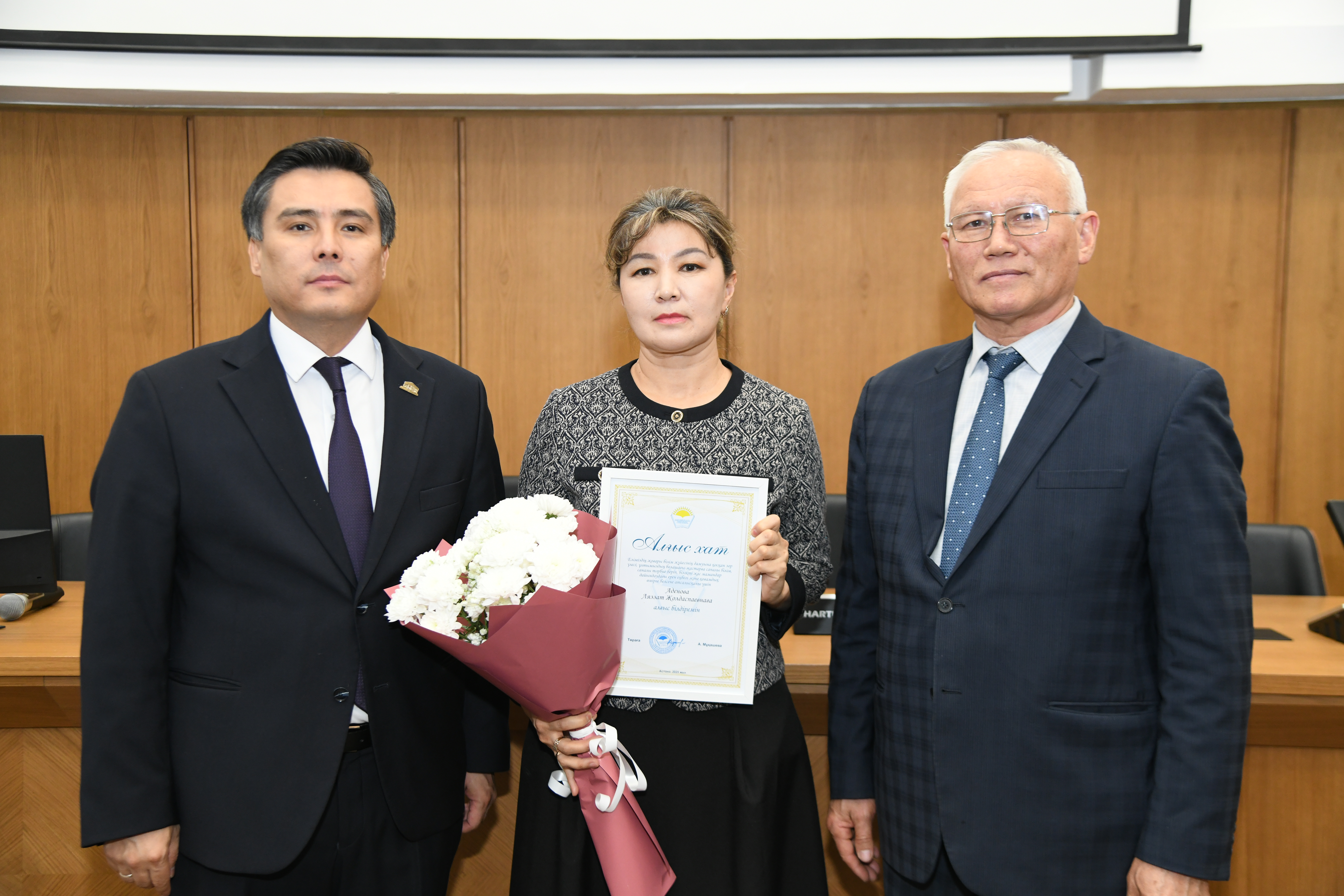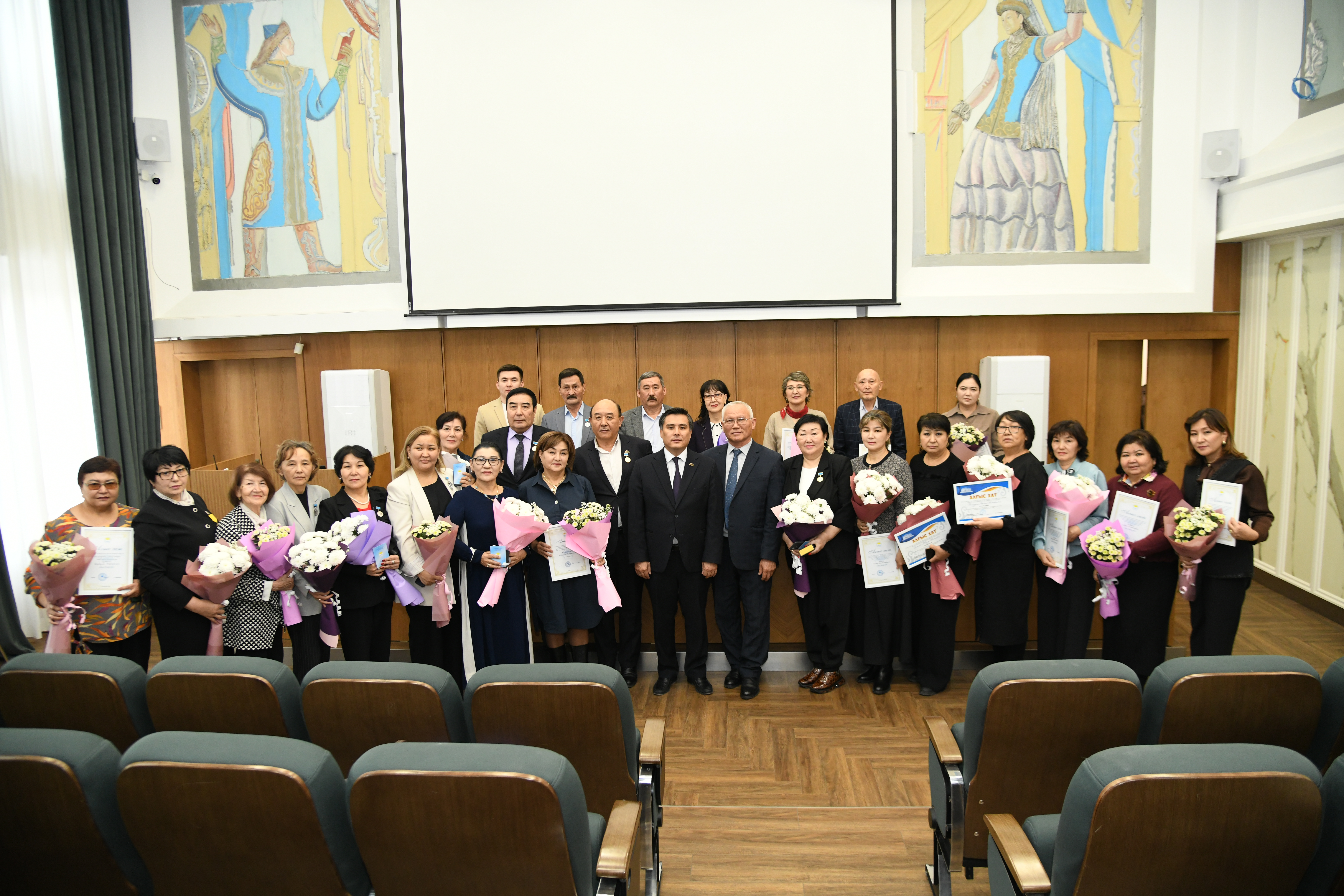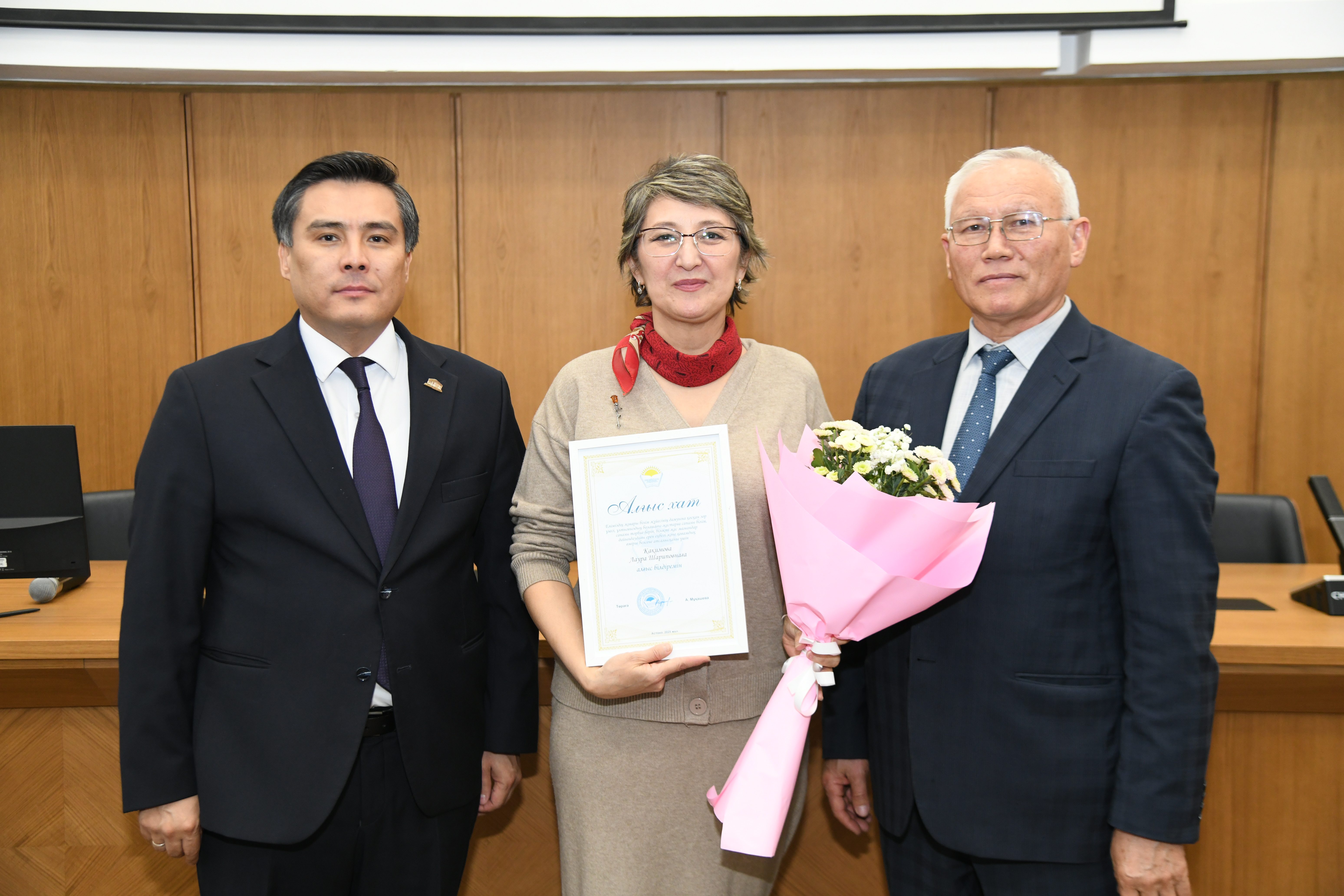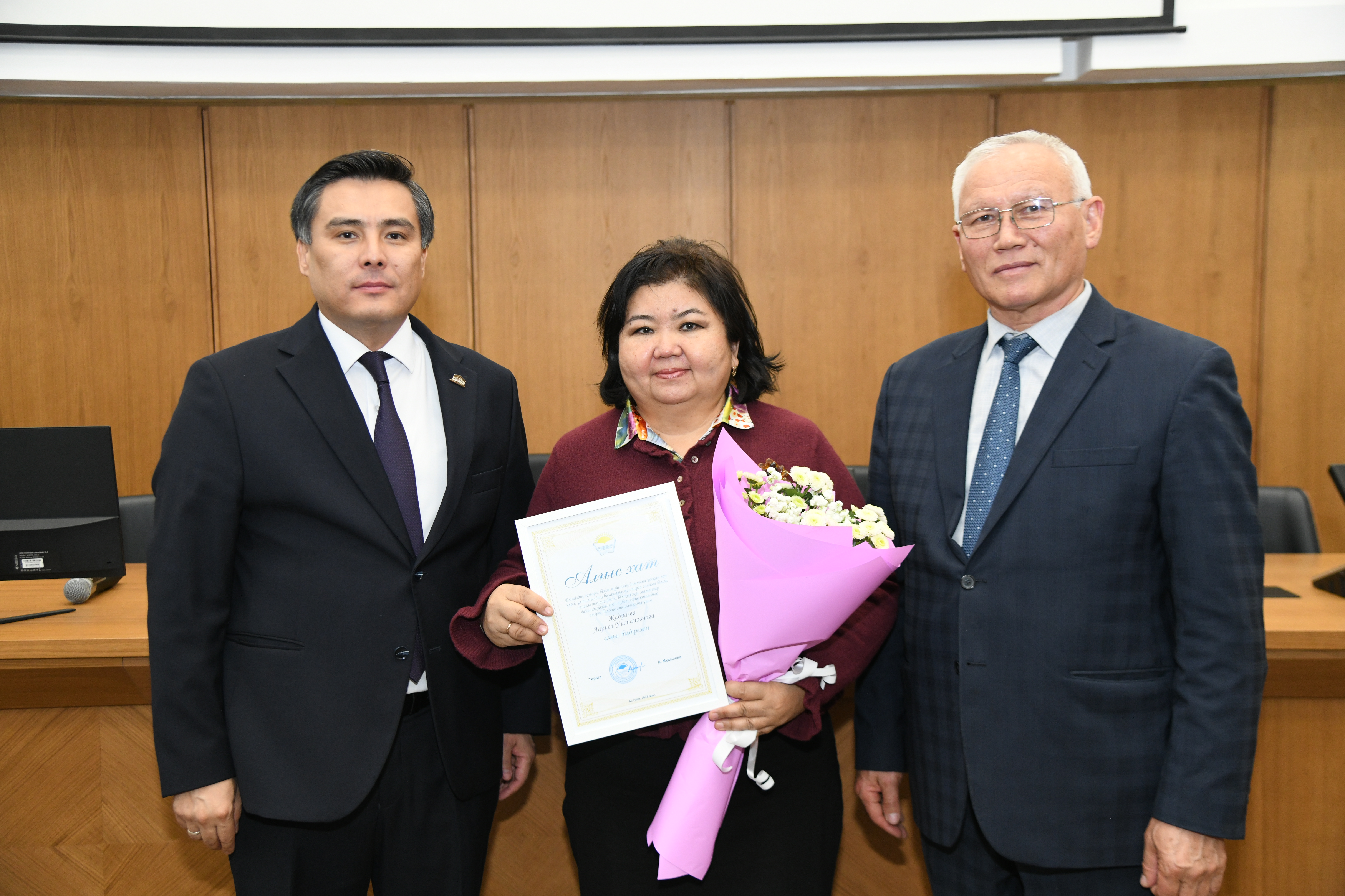 The ceremonial event was opened by the Chairman of the Trade Union Organization, Mukhtar Ibraimov, who expressed his gratitude to active faculty members and extended his best wishes. He was followed by the Vice-Rector for Social Development, Maksat Zhakau, who wished the staff creative success and congratulated them on the upcoming New Year. He also presented badges and letters of appreciation to individuals who contributed to the development of trade union activities. Below is the list of award recipients. Awarded with the badge “For Special Merits to the Trade Union of Industry Workers” Saken Nurkaidarovich Irkitbayev — Faculty of Natural Sciences and Geography, Senior Lecturer, Department of Geography and Ecology; Sholpan Bagaevna Kamzabekova — Senior Lecturer, Faculty of Mathematics, Physics and Informatics; Sovetkazhy Kusainovich Zhamankarayeav — Professor, Department of Art Education, Faculty of Arts; Raushan Khabdulmutalyapovna Kanapyanova — Faculty of Arts, Department of Design, Candidate of Pedagogical Sciences, Associate Professor. Awarded with the badge “For Merits to the Trade Union of Education and Science Workers” Zulfiya Oralbaykyzy Unerbayeva — Faculty of Natural Sciences and Geography, Department of Chemistry, Candidate of Pedagogical Sciences, University Professor; Elmira Kauynbayeva — Faculty of Natural Sciences and Geography, Department of Biology, Master of Biology, Senior Lecturer; Dinara Melsovna Amanbekova — Faculty of Natural Sciences and Geography, Department of Biology, Master of Biology, Senior Lecturer; Eleonora Zhumabekovna Kanseitova — Candidate of Philological Sciences, Senior Lecturer. Awarded with the badge “Trade Union Veteran” Kulira Zamanbekovna Khalikova — Faculty of Mathematics, Physics and Informatics, Candidate of Pedagogical Sciences, Professor; Kulmeskhan Auelkhanovna Abdreimova — Faculty of Pedagogy and Psychology, Acting Associate Professor of the Department of Pedagogy and Psychology, Candidate of Pedagogical Sciences; Akmaral Kulmagambetovna Satova — Faculty of Pedagogy and Psychology, Department of General and Applied Psychology, Doctor of Psychological Sciences, Professor. Awarded with a Letter of Appreciation from the Sectoral Trade Union of Workers of Education, Science and Higher Education of Kazakhstan Larisa Ushtanovna Zhadraeva — Associate Professor, Doctor of Pedagogical Sciences; Zhaksylyk Abdreshovna Kutelova — Faculty of Mathematics, Physics and Informatics, Senior Laboratory Assistant; Assiya Abenovna Daurambekova — Faculty of Pedagogy and Psychology, Senior Lecturer, Department of Special Pedagogy; Azatgul Akhmetovna Kdyrbayeva — Professor, Candidate of Physical and Mathematical Sciences; Sholpan Abdykyzy Megdigaliyeva — Senior Lecturer, Faculty of Physical Education and Initial Military Training; Shynar Bolatkyzy — Faculty of Physical Education and Initial Military Training, Senior Lecturer, Department of Theory and Methodology of Physical Culture; Laura Sharipovna Kakimova — Candidate of Pedagogical Sciences, Associate Professor, Acting Professor; Lyazzat Zholdaspayevna Adenova — Senior Lecturer, Master of Arts, Member of the Union of Artists of Kazakhstan, Member of the Ethnodesign Union of the Republic of Kazakhstan; Bagat Shaimerdenovich Toybayev — Artist-Designer, “Ulagat” Publishing House; Erbolat Kenzhakanovich Zhamenkeyev — Department of Physics, Candidate of Technical Sciences, Acting Associate Professor; Bagdat Shaimerdenovich Toybayev — Artist-Designer, “Ulagat” Publishing House; Sagynysh Darubayuly Tashirov — Cutting Engineer, “Ulagat” Publishing House; Dauletkhan Nursapiyevich Zhumagaliyev — Folding Engineer, “Ulagat” Publishing House; Zhaniya Kapanovna Smagulova — Editor, “Ulagat” Publishing House.