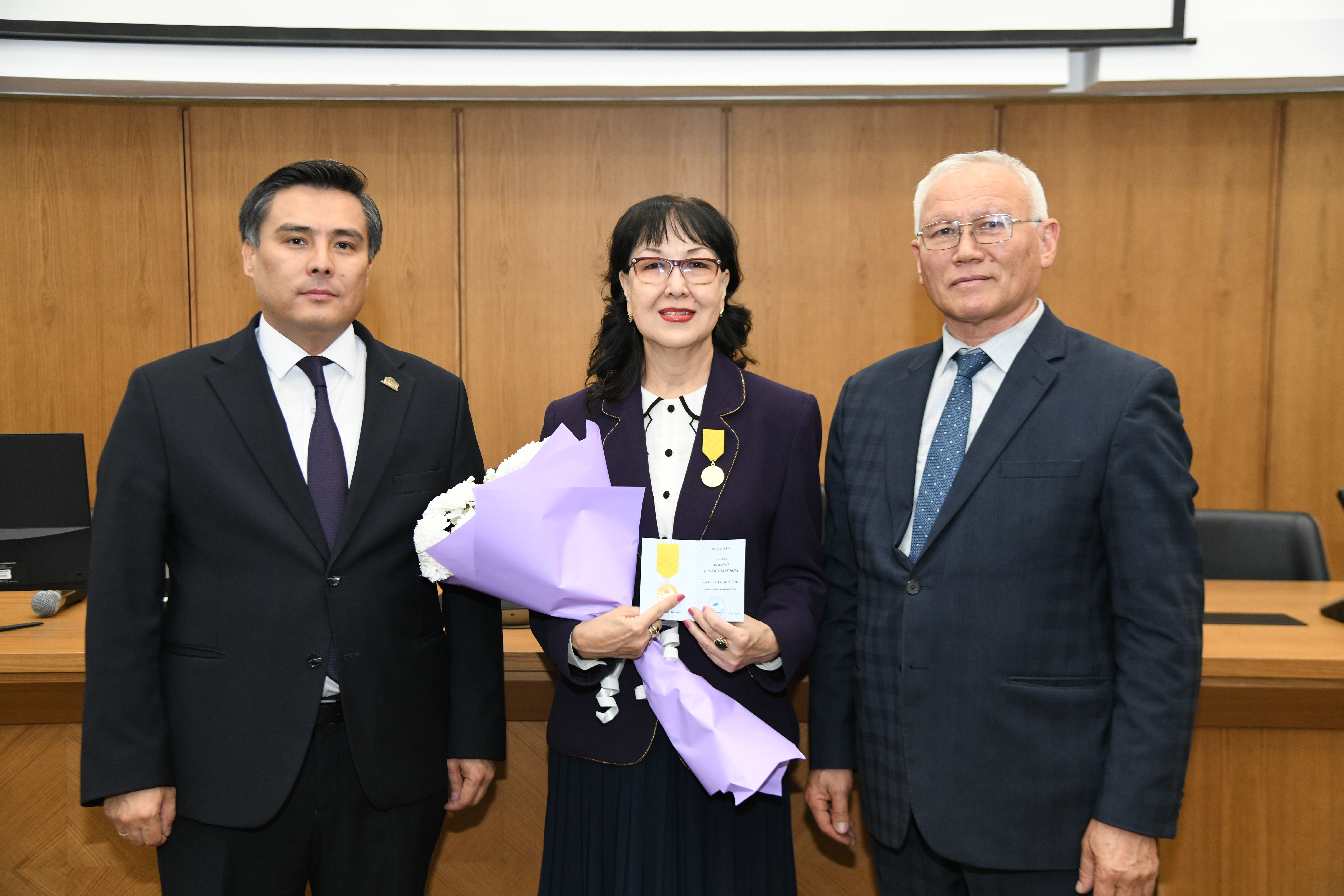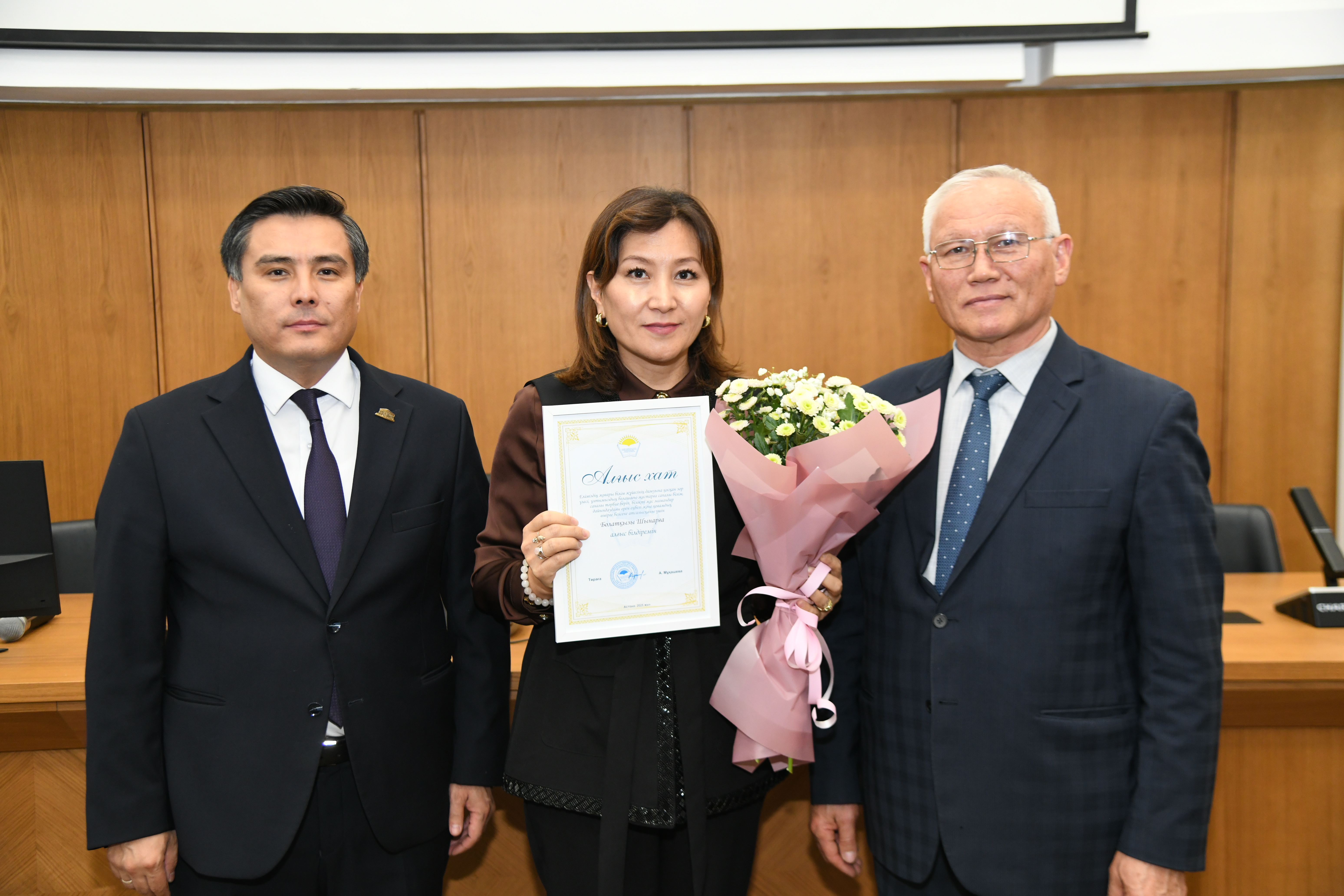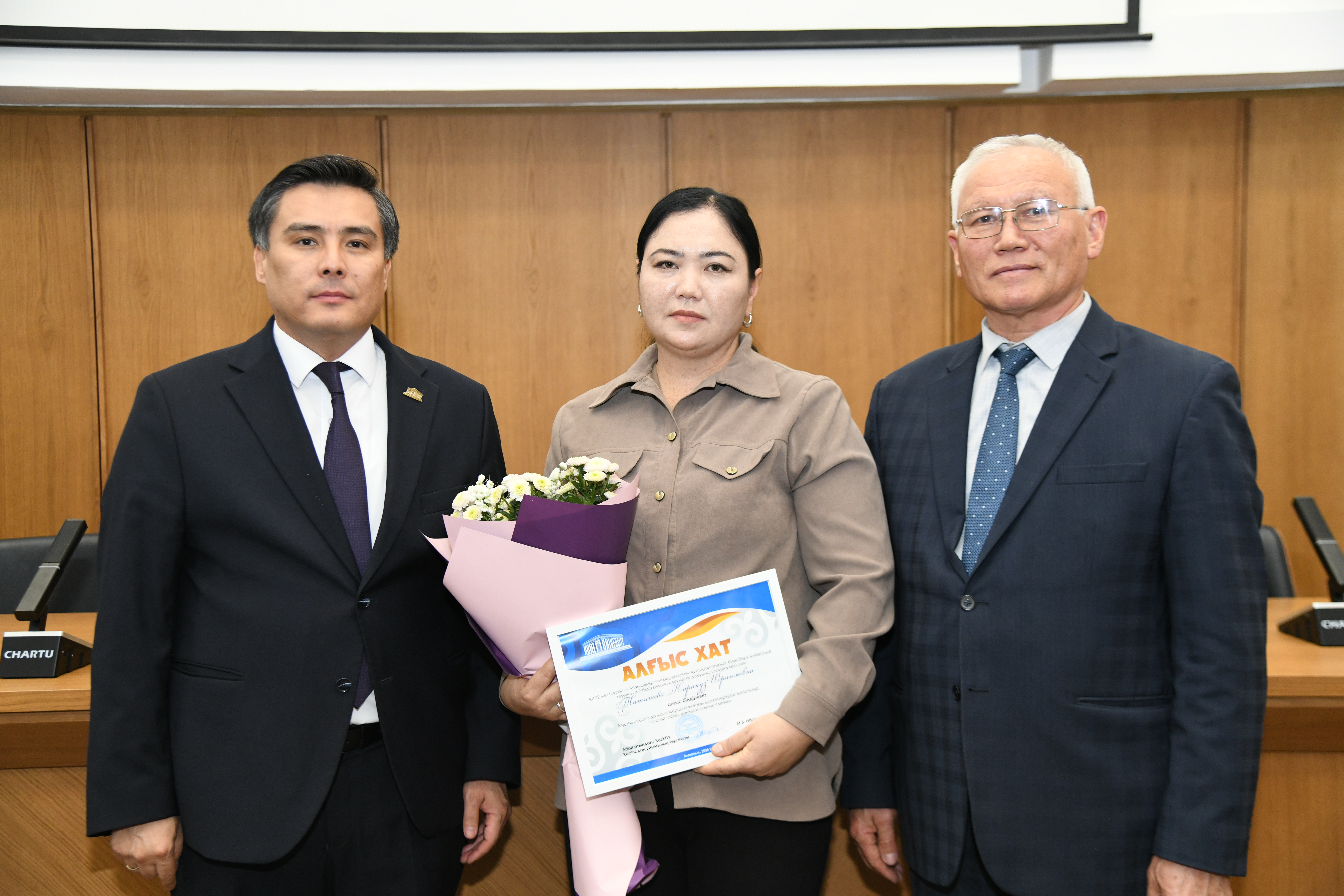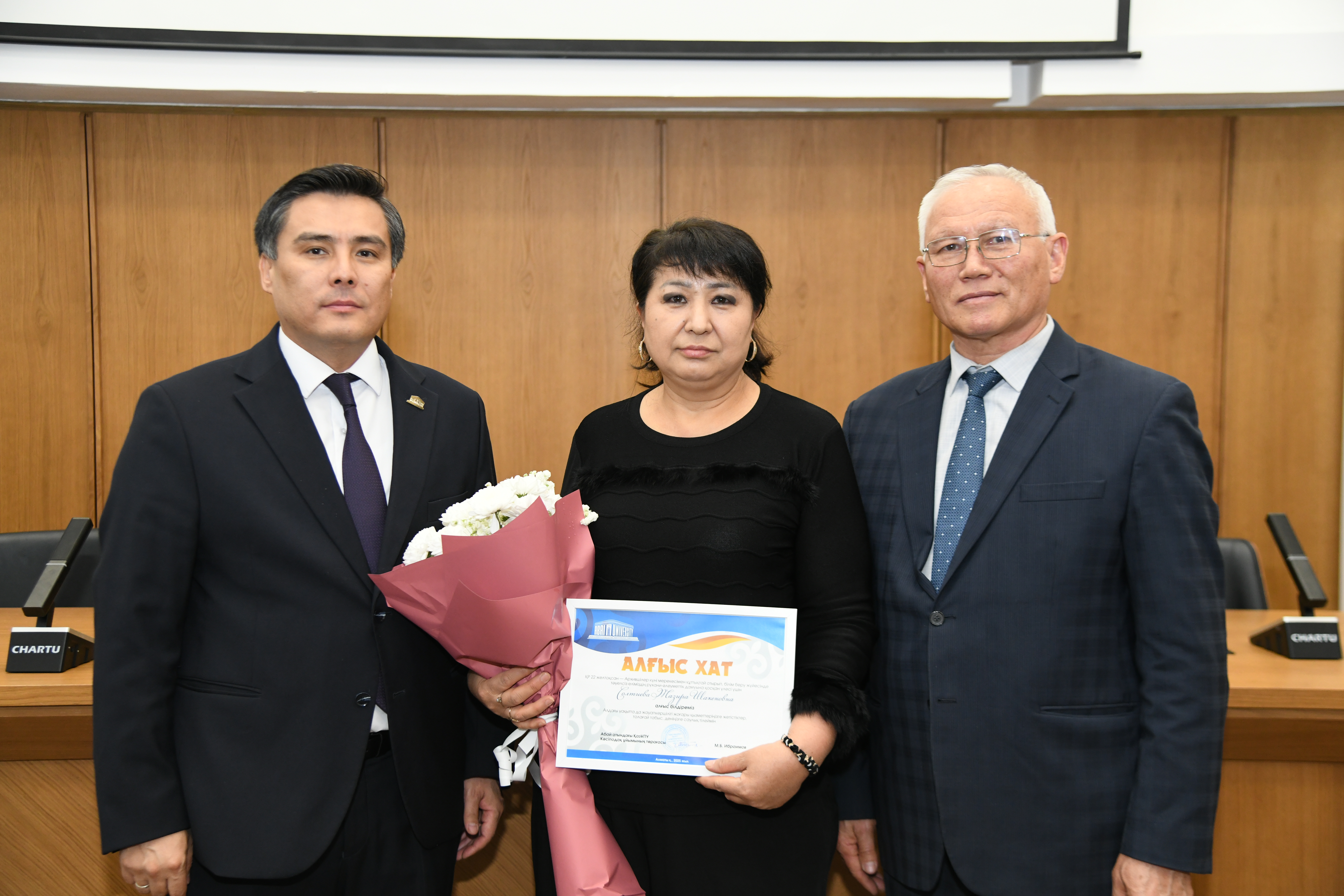 The ceremonial event was opened by the Chairman of the Trade Union Organization, Mukhtar Ibraimov, who expressed his gratitude to active faculty members and extended his best wishes. He was followed by the Vice-Rector for Social Development, Maksat Zhakau, who wished the staff creative success and congratulated them on the upcoming New Year. He also presented badges and letters of appreciation to individuals who contributed to the development of trade union activities. Below is the list of award recipients. Awarded with the badge “For Special Merits to the Trade Union of Industry Workers” Saken Nurkaidarovich Irkitbayev — Faculty of Natural Sciences and Geography, Senior Lecturer, Department of Geography and Ecology; Sholpan Bagaevna Kamzabekova — Senior Lecturer, Faculty of Mathematics, Physics and Informatics; Sovetkazhy Kusainovich Zhamankarayeav — Professor, Department of Art Education, Faculty of Arts; Raushan Khabdulmutalyapovna Kanapyanova — Faculty of Arts, Department of Design, Candidate of Pedagogical Sciences, Associate Professor. Awarded with the badge “For Merits to the Trade Union of Education and Science Workers” Zulfiya Oralbaykyzy Unerbayeva — Faculty of Natural Sciences and Geography, Department of Chemistry, Candidate of Pedagogical Sciences, University Professor; Elmira Kauynbayeva — Faculty of Natural Sciences and Geography, Department of Biology, Master of Biology, Senior Lecturer; Dinara Melsovna Amanbekova — Faculty of Natural Sciences and Geography, Department of Biology, Master of Biology, Senior Lecturer; Eleonora Zhumabekovna Kanseitova — Candidate of Philological Sciences, Senior Lecturer. Awarded with the badge “Trade Union Veteran” Kulira Zamanbekovna Khalikova — Faculty of Mathematics, Physics and Informatics, Candidate of Pedagogical Sciences, Professor; Kulmeskhan Auelkhanovna Abdreimova — Faculty of Pedagogy and Psychology, Acting Associate Professor of the Department of Pedagogy and Psychology, Candidate of Pedagogical Sciences; Akmaral Kulmagambetovna Satova — Faculty of Pedagogy and Psychology, Department of General and Applied Psychology, Doctor of Psychological Sciences, Professor. Awarded with a Letter of Appreciation from the Sectoral Trade Union of Workers of Education, Science and Higher Education of Kazakhstan Larisa Ushtanovna Zhadraeva — Associate Professor, Doctor of Pedagogical Sciences; Zhaksylyk Abdreshovna Kutelova — Faculty of Mathematics, Physics and Informatics, Senior Laboratory Assistant; Assiya Abenovna Daurambekova — Faculty of Pedagogy and Psychology, Senior Lecturer, Department of Special Pedagogy; Azatgul Akhmetovna Kdyrbayeva — Professor, Candidate of Physical and Mathematical Sciences; Sholpan Abdykyzy Megdigaliyeva — Senior Lecturer, Faculty of Physical Education and Initial Military Training; Shynar Bolatkyzy — Faculty of Physical Education and Initial Military Training, Senior Lecturer, Department of Theory and Methodology of Physical Culture; Laura Sharipovna Kakimova — Candidate of Pedagogical Sciences, Associate Professor, Acting Professor; Lyazzat Zholdaspayevna Adenova — Senior Lecturer, Master of Arts, Member of the Union of Artists of Kazakhstan, Member of the Ethnodesign Union of the Republic of Kazakhstan; Bagat Shaimerdenovich Toybayev — Artist-Designer, “Ulagat” Publishing House; Erbolat Kenzhakanovich Zhamenkeyev — Department of Physics, Candidate of Technical Sciences, Acting Associate Professor; Bagdat Shaimerdenovich Toybayev — Artist-Designer, “Ulagat” Publishing House; Sagynysh Darubayuly Tashirov — Cutting Engineer, “Ulagat” Publishing House; Dauletkhan Nursapiyevich Zhumagaliyev — Folding Engineer, “Ulagat” Publishing House; Zhaniya Kapanovna Smagulova — Editor, “Ulagat” Publishing House.