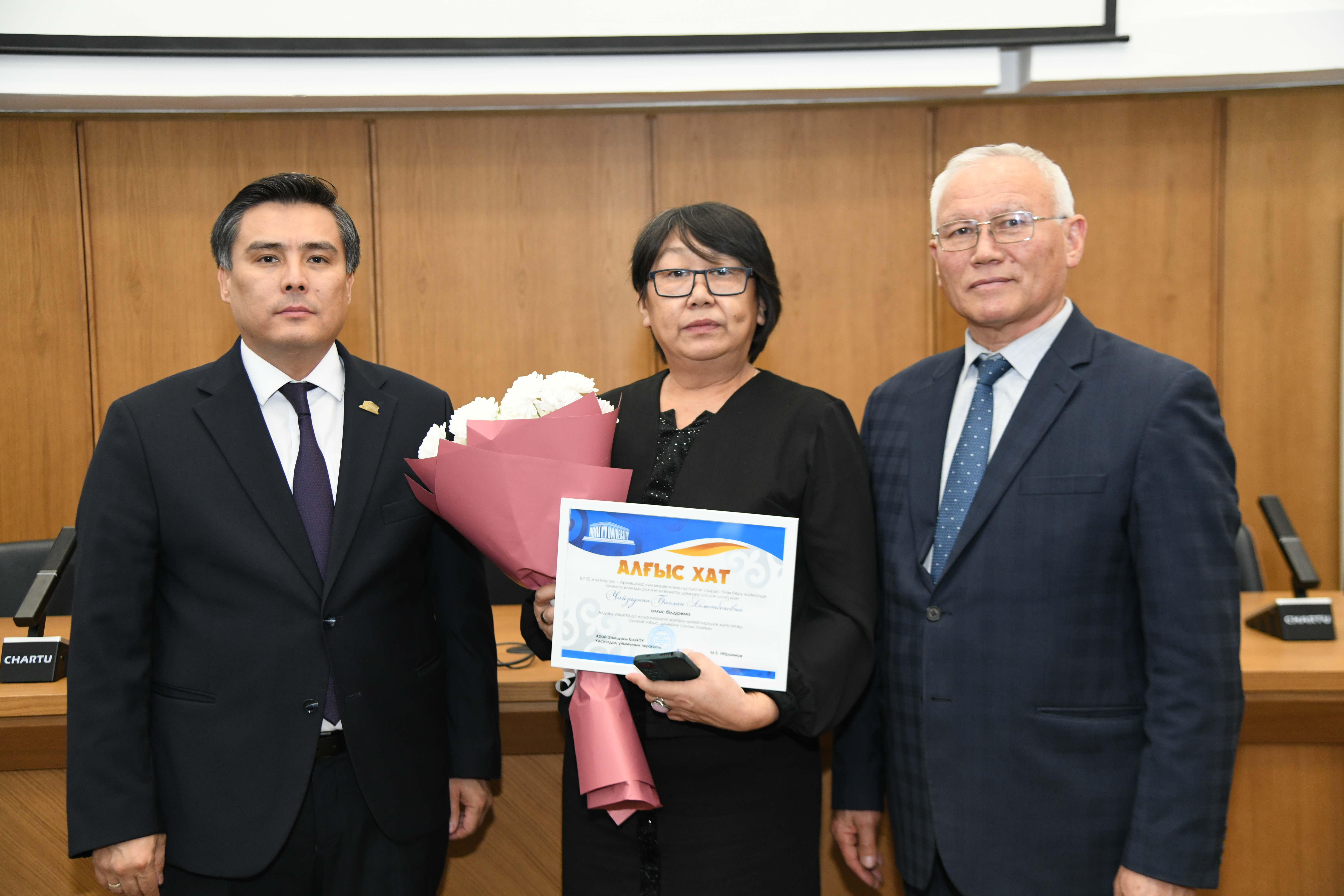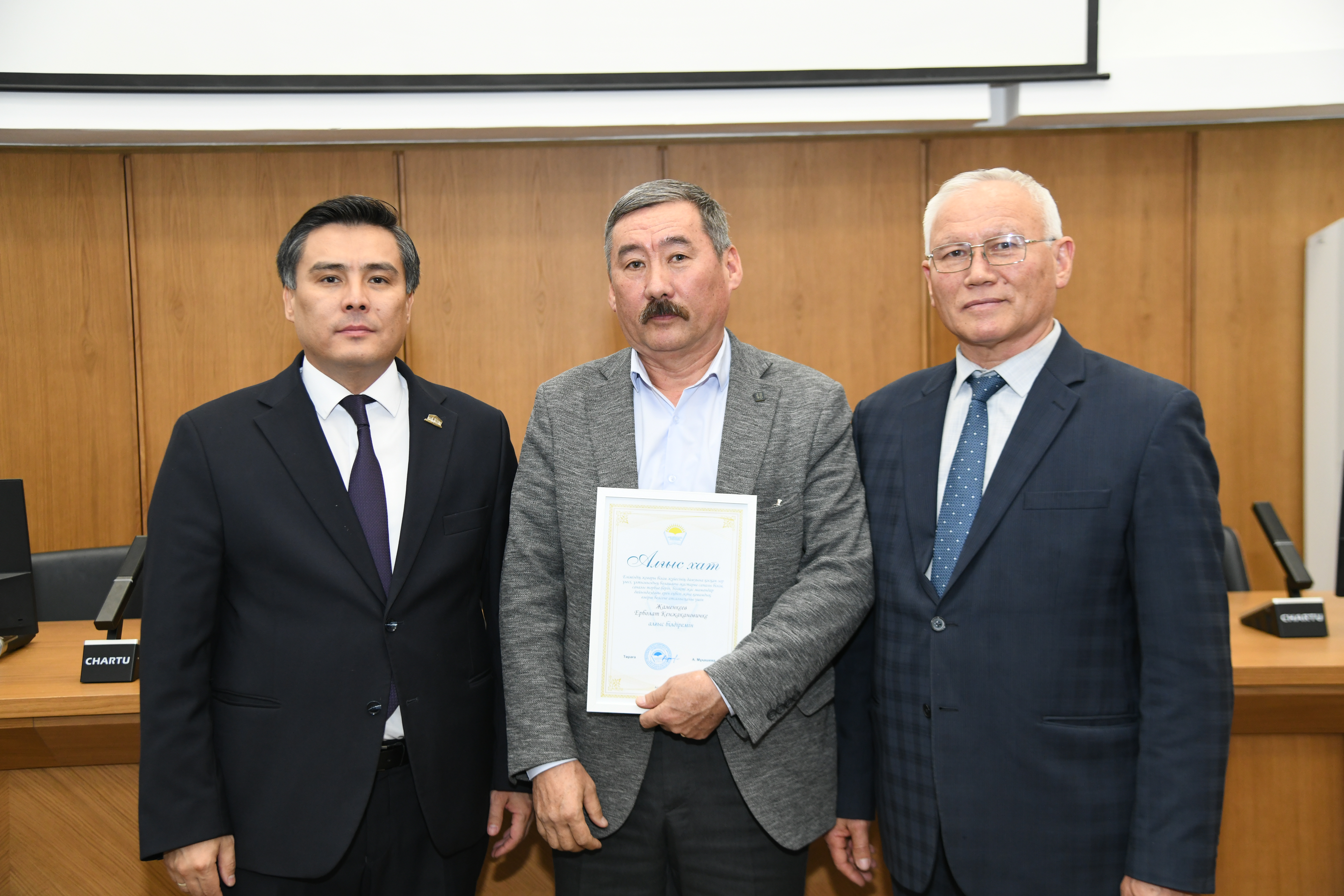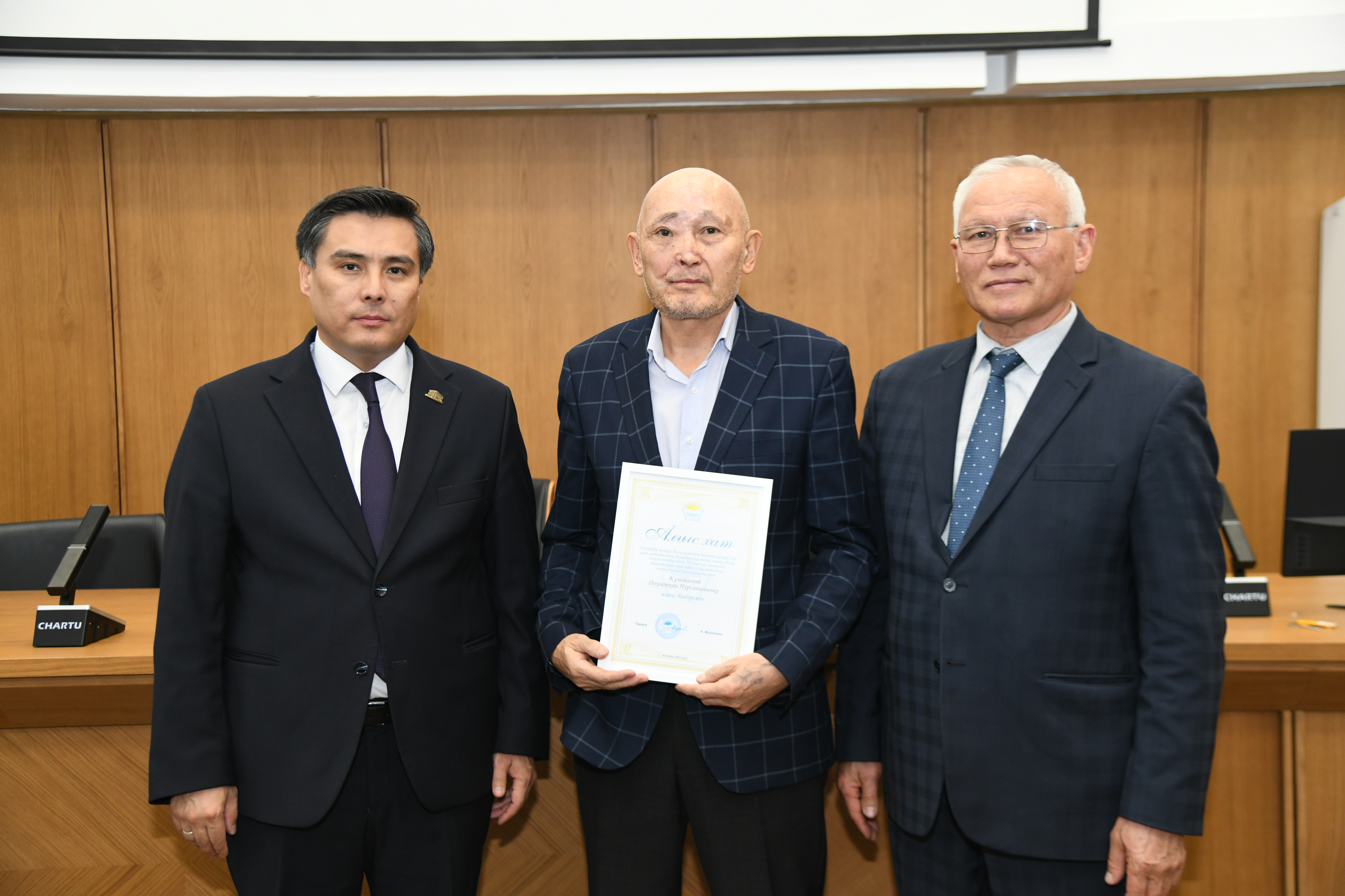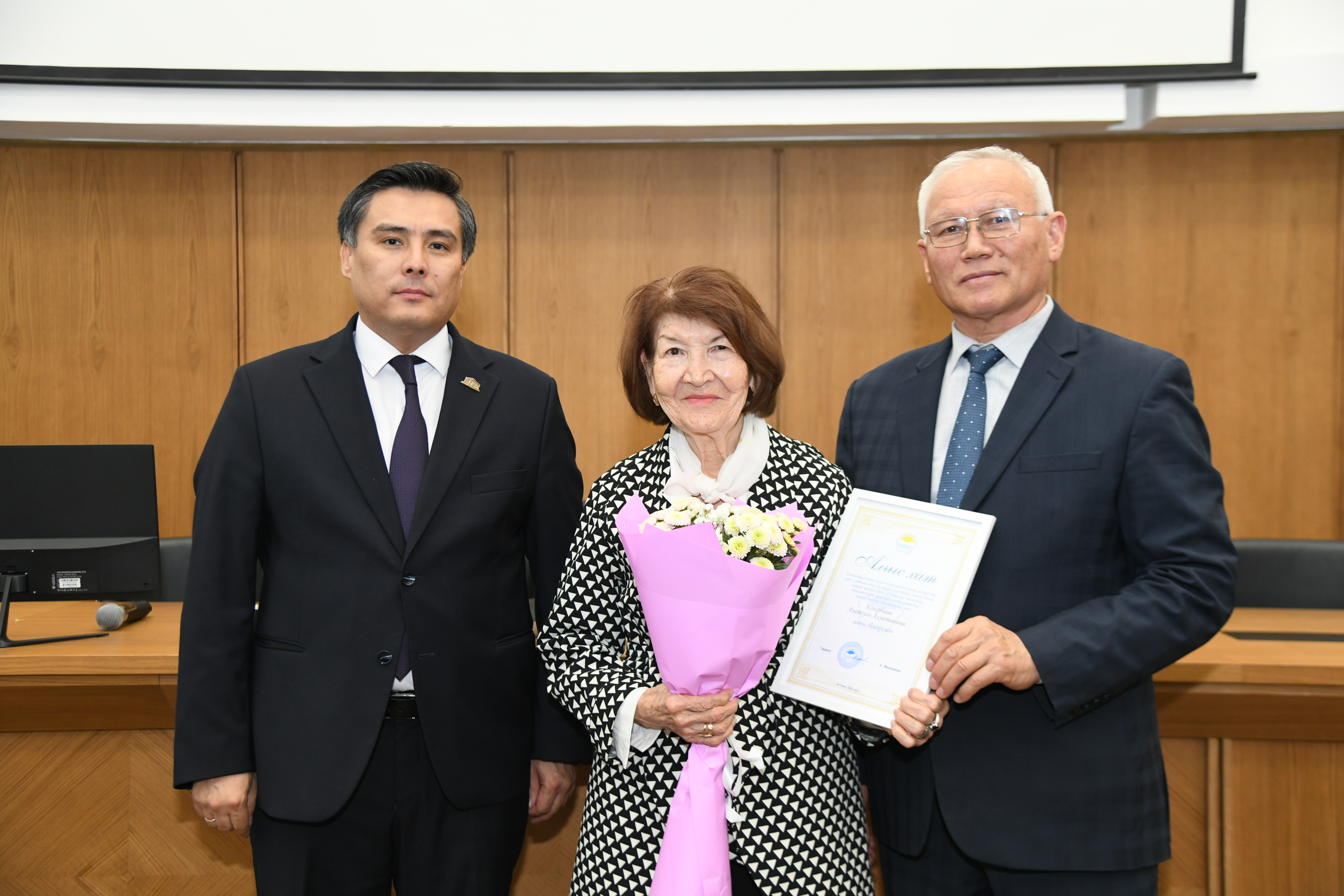 The ceremonial event was opened by the Chairman of the Trade Union Organization, Mukhtar Ibraimov, who expressed his gratitude to active faculty members and extended his best wishes. He was followed by the Vice-Rector for Social Development, Maksat Zhakau, who wished the staff creative success and congratulated them on the upcoming New Year. He also presented badges and letters of appreciation to individuals who contributed to the development of trade union activities. Below is the list of award recipients. Awarded with the badge “For Special Merits to the Trade Union of Industry Workers” Saken Nurkaidarovich Irkitbayev — Faculty of Natural Sciences and Geography, Senior Lecturer, Department of Geography and Ecology; Sholpan Bagaevna Kamzabekova — Senior Lecturer, Faculty of Mathematics, Physics and Informatics; Sovetkazhy Kusainovich Zhamankarayeav — Professor, Department of Art Education, Faculty of Arts; Raushan Khabdulmutalyapovna Kanapyanova — Faculty of Arts, Department of Design, Candidate of Pedagogical Sciences, Associate Professor. Awarded with the badge “For Merits to the Trade Union of Education and Science Workers” Zulfiya Oralbaykyzy Unerbayeva — Faculty of Natural Sciences and Geography, Department of Chemistry, Candidate of Pedagogical Sciences, University Professor; Elmira Kauynbayeva — Faculty of Natural Sciences and Geography, Department of Biology, Master of Biology, Senior Lecturer; Dinara Melsovna Amanbekova — Faculty of Natural Sciences and Geography, Department of Biology, Master of Biology, Senior Lecturer; Eleonora Zhumabekovna Kanseitova — Candidate of Philological Sciences, Senior Lecturer. Awarded with the badge “Trade Union Veteran” Kulira Zamanbekovna Khalikova — Faculty of Mathematics, Physics and Informatics, Candidate of Pedagogical Sciences, Professor; Kulmeskhan Auelkhanovna Abdreimova — Faculty of Pedagogy and Psychology, Acting Associate Professor of the Department of Pedagogy and Psychology, Candidate of Pedagogical Sciences; Akmaral Kulmagambetovna Satova — Faculty of Pedagogy and Psychology, Department of General and Applied Psychology, Doctor of Psychological Sciences, Professor. Awarded with a Letter of Appreciation from the Sectoral Trade Union of Workers of Education, Science and Higher Education of Kazakhstan Larisa Ushtanovna Zhadraeva — Associate Professor, Doctor of Pedagogical Sciences; Zhaksylyk Abdreshovna Kutelova — Faculty of Mathematics, Physics and Informatics, Senior Laboratory Assistant; Assiya Abenovna Daurambekova — Faculty of Pedagogy and Psychology, Senior Lecturer, Department of Special Pedagogy; Azatgul Akhmetovna Kdyrbayeva — Professor, Candidate of Physical and Mathematical Sciences; Sholpan Abdykyzy Megdigaliyeva — Senior Lecturer, Faculty of Physical Education and Initial Military Training; Shynar Bolatkyzy — Faculty of Physical Education and Initial Military Training, Senior Lecturer, Department of Theory and Methodology of Physical Culture; Laura Sharipovna Kakimova — Candidate of Pedagogical Sciences, Associate Professor, Acting Professor; Lyazzat Zholdaspayevna Adenova — Senior Lecturer, Master of Arts, Member of the Union of Artists of Kazakhstan, Member of the Ethnodesign Union of the Republic of Kazakhstan; Bagat Shaimerdenovich Toybayev — Artist-Designer, “Ulagat” Publishing House; Erbolat Kenzhakanovich Zhamenkeyev — Department of Physics, Candidate of Technical Sciences, Acting Associate Professor; Bagdat Shaimerdenovich Toybayev — Artist-Designer, “Ulagat” Publishing House; Sagynysh Darubayuly Tashirov — Cutting Engineer, “Ulagat” Publishing House; Dauletkhan Nursapiyevich Zhumagaliyev — Folding Engineer, “Ulagat” Publishing House; Zhaniya Kapanovna Smagulova — Editor, “Ulagat” Publishing House.