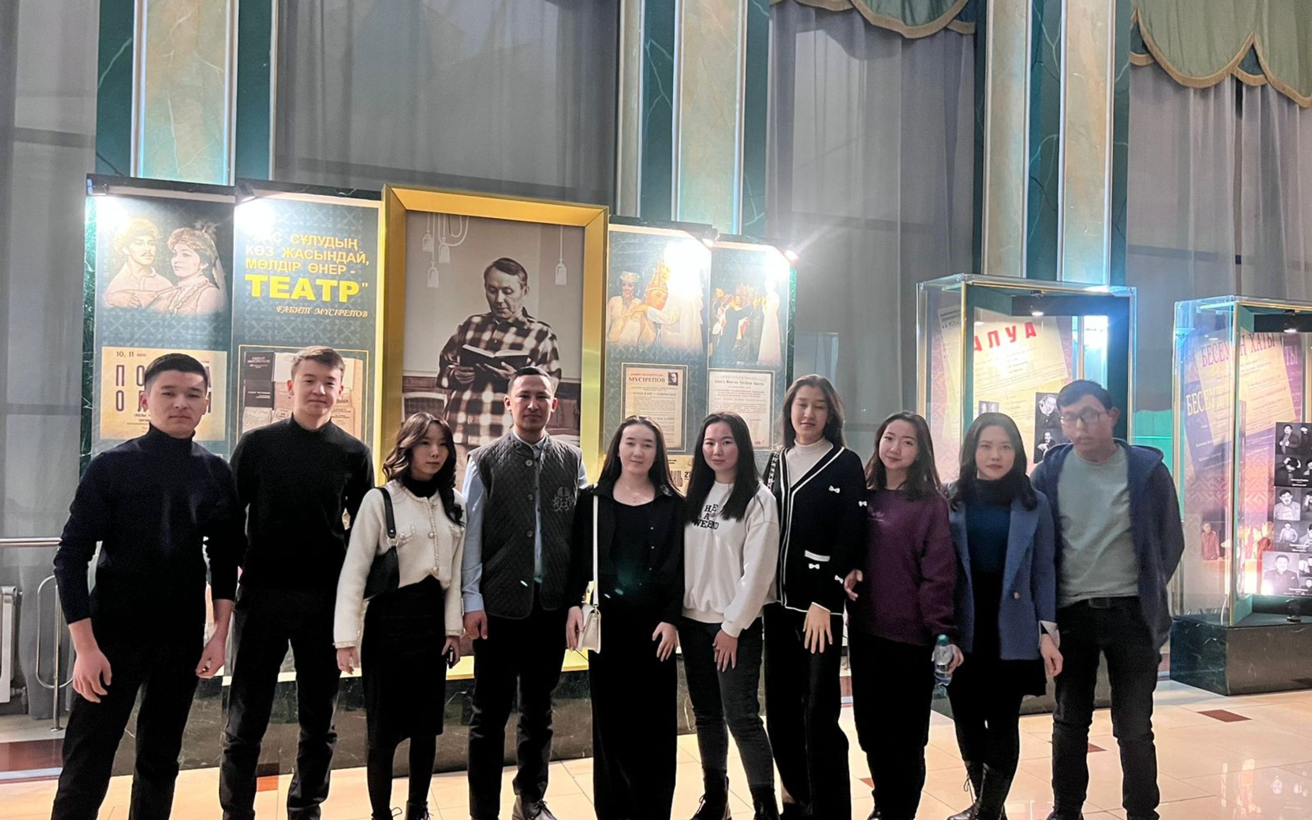 On December 10, 2022 at the initiative of senior lecturer of Department of World History of Institute of History and Law Mamyrbayev Didar a cultural event was organized. The teaching staff of the Department, the Head Rustem Kamshat, Professors Suteeva Khanzada, Tulekova Mereke and Nurmanbetkyzy Zhumakhan, Senior Lecturer Seitkaziev Ruslan, as well as students of the 3rd year specialty "6B01602-History-Religious Studies" and the 2nd year - "6B02209-History-Geography" visited the G.Musrepov Theatre, where they watched the play "Smell of Wormwood" based on the story of the same name by famous Kazakh playwright Sain Muratbekov. The play was very touching and memorable for its high spiritual significance.