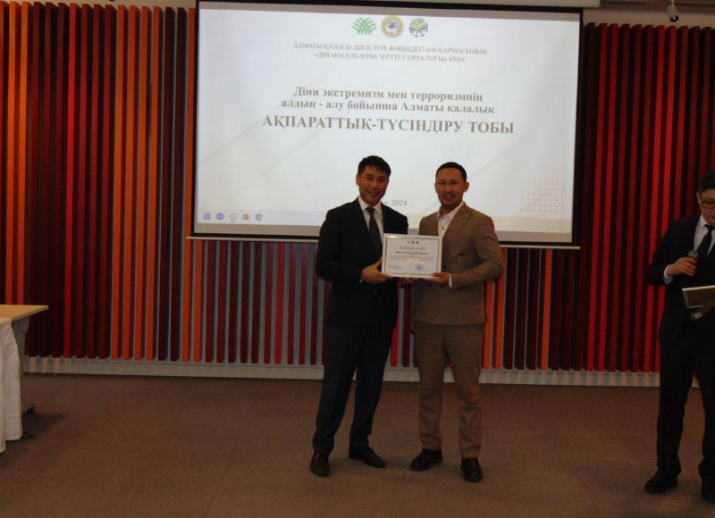 Summary Meeting on Preventing Religious Extremism and Terrorism in Almaty On December 10, 2024, Senior Lecturer of the Faculty of History and Law, Department of World History, Didar Mamyrbayev, participated in a congratulatory event dedicated to the members of the Almaty City Information and Awareness Group. The event recognized their contributions to implementing the state policy in the field of religion aimed at preventing religious extremism and terrorism.