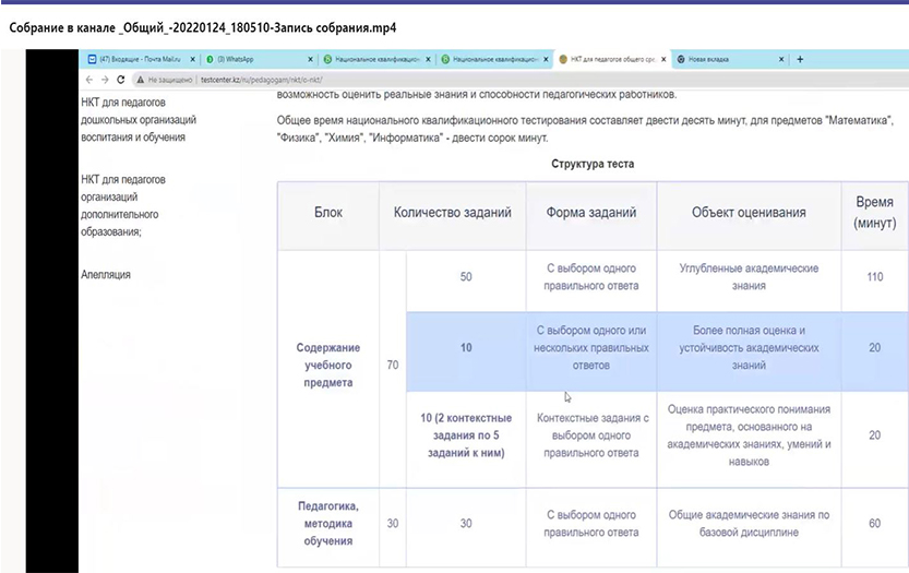 As part of the preparation of graduate students for the delivery of the NQT in the period from 24 January to 6 February 2022, teachers of the Institute of Pedagogy and Psychology, the Department of vocational Training of the EP «Primary Education» Lebedeva L.A., Ryabova E.V., Akpaeva A.B., Arenova A.H. and Safargalieva A.I. conducted classes in 5 directions: methods of teaching the Russian language, methods of teaching natural science, knowledge of the world, methods of teaching mathematics, pedagogy, methods of teaching literary reading.