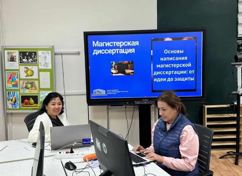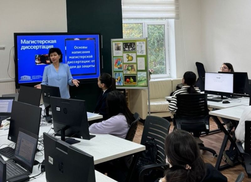 The main theme of the workshop was writing a master`s thesis: from developing the idea to successfully defending it. During the event, key stages of thesis creation were presented, including finding a relevant topic, research methodology, and preparation for public defense. The speakers, Candidate of Pedagogical Sciences, Professor of the Department of Primary Education Asel Akpaeva, and Candidate of Pedagogical Sciences, Associate Professor, Postdoctoral Fellow of the Department of Primary Education Adlet Kariev, elaborated on the requirements for the structure of a dissertation and the rules for conducting and formatting scientific research.