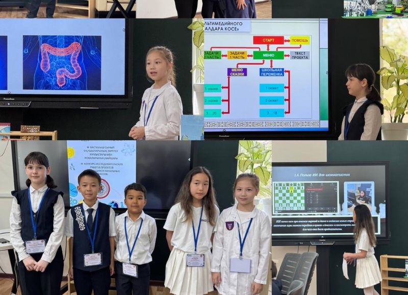 Students from grades 1 to 4 of schools in Almaty and the Almaty region participated in the competition, with a total of 42 applications submitted. Following a preliminary selection, 17 projects advanced to the finals-12 in the younger age group (grades 1-2) and 5 in the older age group (grades 3-4). Participants presented projects on various pertinent topics, including ecology, mathematics, cultural heritage, technology, and everyday life studies.