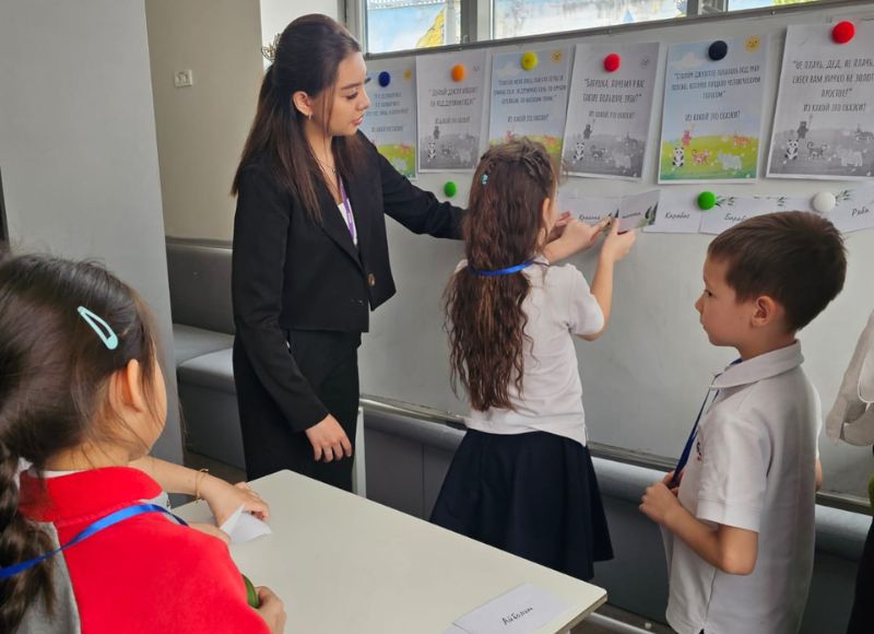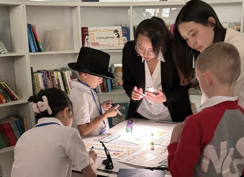Literary Lounge “Fairy Tale Detective”: An Engaging Event for Primary School Students at NGS Partner School within the Dual Education Framework On April 23, 2025, NGS (New Generation School) partner school hosted an engaging and educational event titled "Fairy Tale Detective". This literary lounge was organized by third-year intern students of the "Primary Education with ICT" Educational Program (under the guidance of Professor L. Lebedeva), as part of the dual education system and the Subject "Methods of Teaching Educational Subject Literary Reading". Professors Assel Akpaeva and Senior Lecturer Aіуm Tynyskhanova from the Department of Primary Education KazNPU named after Abai, along with second-grade teachers Raushan Bekmuratova and Olga Pogarskaya, actively participated in the preparation and execution of the event.