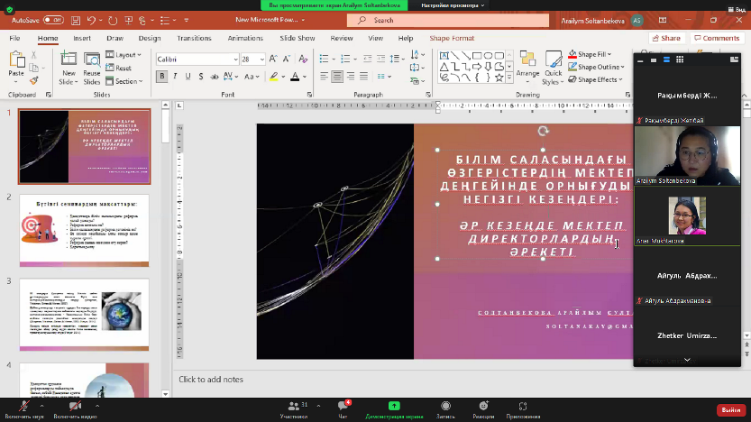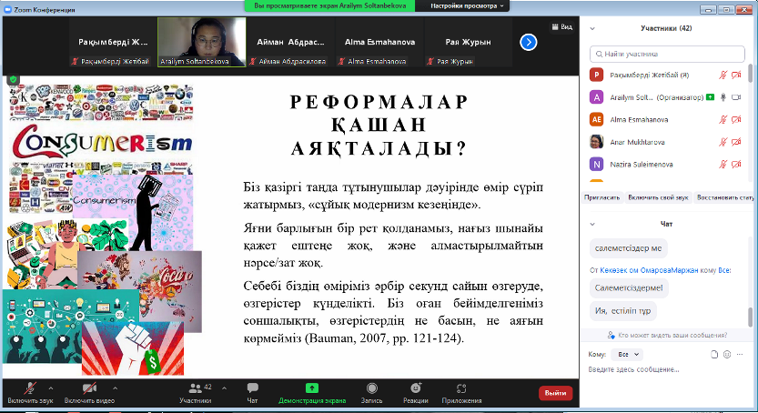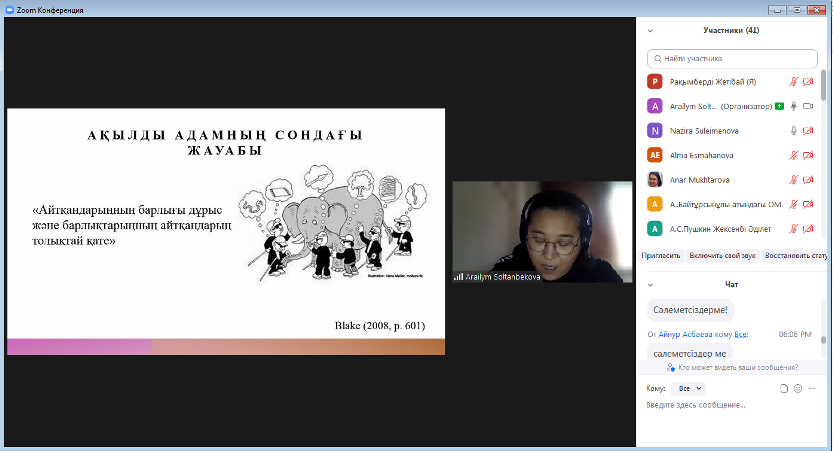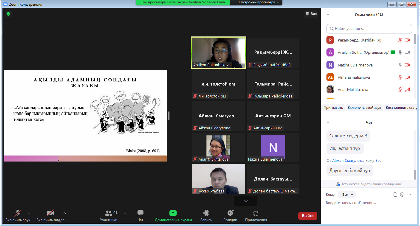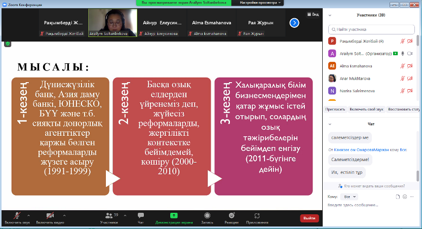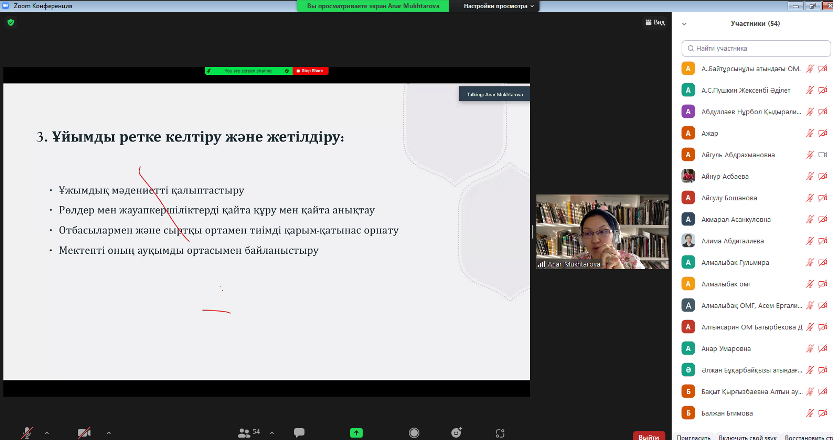 Курсты спикер ретінде ҚР Президентінің «Болашақ» стипендиясының иегері, 2010-2011 жылдары Ұлыбританиядағы Ноттингем университетінің магистратурасын «Білім саласындағы көшбасшылық және менеджмент» мамандығы бойынша үздік дипломмен аяқтаған, 2018 жылдан бері Уорик университеті (Ұлыбритания) Білім саласын зерттеу департаментінің зерттеуші-ассистенті, PhD-докторант, 2021 ж. Білім беру саласындағы зерттеулердің Еуропалық конференциясының (ECER) әлеуметтік стипендия иегері Анар Мұхтарова және «Болашақ» бағдарламасы бойынша Ұлыбританияның Уорик Университетінде Білім берудегі көшбасшылық және менеджмент бойынша магистр дәрежесін алған, Қазақстандағы ұстаздардың көшбасшылығы (TLK-ҚҰК) бағдарламасын талдауға байланысты жобаның ғылыми көмекшісі болған Арайлым Солтанбекова жүргізді.