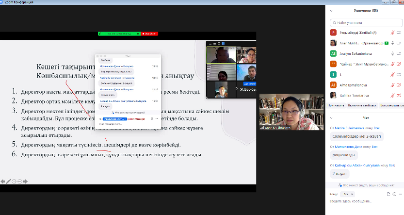 Курс барсында «Білім саласындағы көшбасшылық теорияларға кіріспе», «Білім саласындағы зерттеу әдістеріне кіріспе: практикалық қолданыс», «Жалпы білім беретін мектепті басқарудың бірінші жылында кездесетін қиындықтар: Қазақстан білім жүйесіндегі шағын зерттеу», «Білім саласындағы өзгерістердің мектеп деңгейінде орнығудың негізгі кезеңдері: әр кезеңдегі мектеп директорының әрекеті», «21-ғасыр мектеп директорының рөлдері және құқықтары» тақырыптары кеңінен талқыланып, тыңдаушылардың назарына ұсынылды. Курс соңында барлық тыңдаушыларға Абай атындағы ҚазҰПУ сертификаты табысталды.