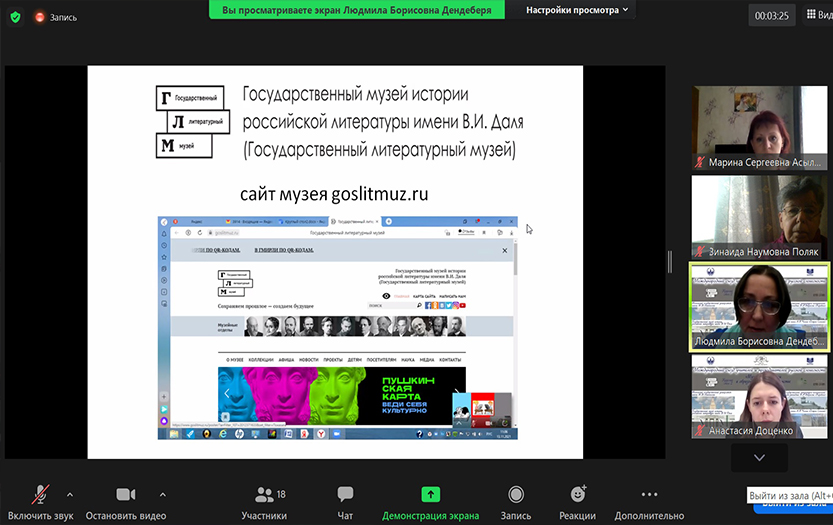 Съезд іс-шаралары аралас форматта ресейлік және шетелдік ғылыми және білім беру ұйымдарының алаңдарында өтті. 2021 жылдың 13 қарашасында Филология және көптілді білім беру институтының орыс тілі мен әдебиеті кафедрасының оқытушылары, кафедра меңгерушісі Сәуле Әбішева, доцент Зинаида Поляк және филология ғылымдарының кандидаты Марина Асылбекова «Мұражай педагогикасы» съезінің секциясына қатысты. Профессор С.Әбішева «Қазіргі әдеби білім беру үдерісінде әдеби және мұражай кеңістігінің интеграциясы»тақырыбында баяндама жасады.