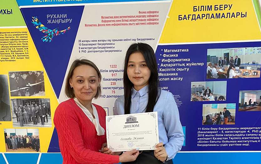 І дәрежелі диплом - ФОК-202 тобының студенті Хайрат Самад, ІІ дәрежелі диплом - ФИК-201 тобының студенттері Кенжебек Бекзат, Жылгельдиева Айнур, ІІІ дәрежелі диплом - ФЕК-202 тобының студенті Есетова Жания,ФИК-201 тобының студенті Парынбек Әкежан,ФЕК-205 тобының студенті Нариманова Ирадам иеленді.