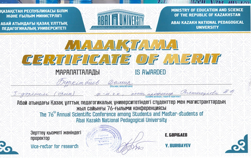 Математика, физика және информатика институтының және «Физика» кафедрасының ұжымы Бүркітбаев Дамирді алған жетістіктерімен құттықтайды және ғылым мен оқуда одан әрі табыстар тілейді!