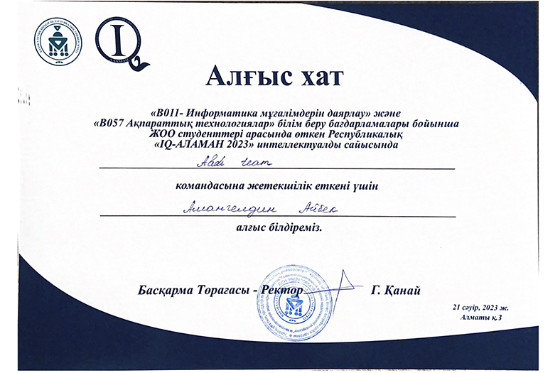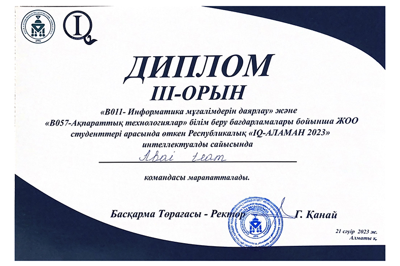 «IQ - ALAMAN-2023» республикалық зияткерлік сайысында Абай университеті командасы 3 орынға ие болды