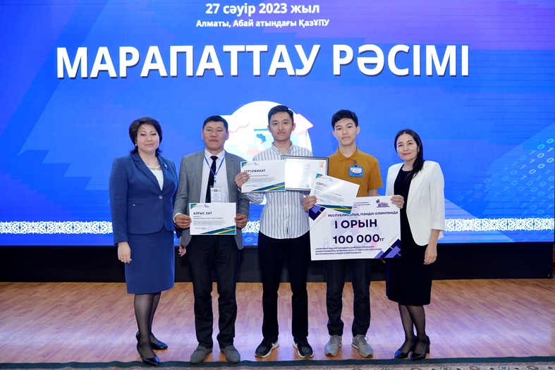 Олимпиада қорытындысы бойынша І-ші орынды Шәкәрім университетінің командасы жеңіп алды: Маратов Нұрхан, Мұхаметкәрім Қаныш (жетекшісі - Мұхаметов Елдос). ІІ орын - Қорқыт Ата атындағы Қызылорда университеті: Тұрысбек Ерасыл, Барзуев Ахмаджан (жетекшісі - Тілеубай Сәрсенқұл) және Қарағанды университеті. Е. А. Бөкетова: Оралбек Мерей, Өміржан Ақкербез (жетекшісі-Хабдолда Болат). ІІІ орын - Қазақ ұлттық қыздар педагогикалық университеті: Әбдірасіл Айдана, Жақсылық Асел(жетекшісі-Жарқынбек Мейіржан); Оңтүстік Қазақстан мемлекеттік педагогикалық университеті: Салман Мұхаммед, Мәуленқұл Бекзат (жетекшісі-Райымбеков Мадияр) және М. Өтемісов атындағы Батыс Қазақстан университеті: Траисов Нұрқанат, Чукалин Антон (жетекшісі - Акимова Сәуле).