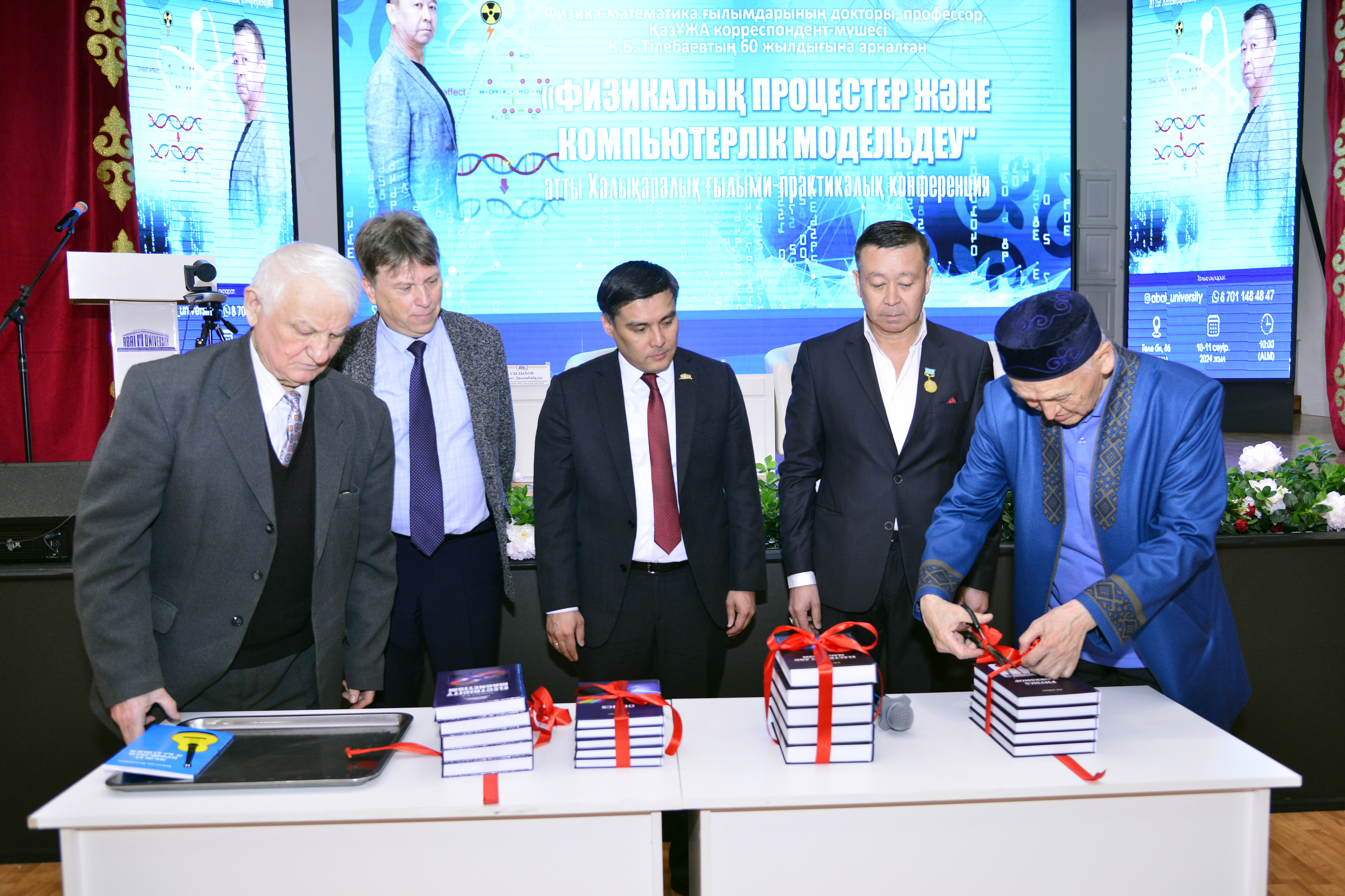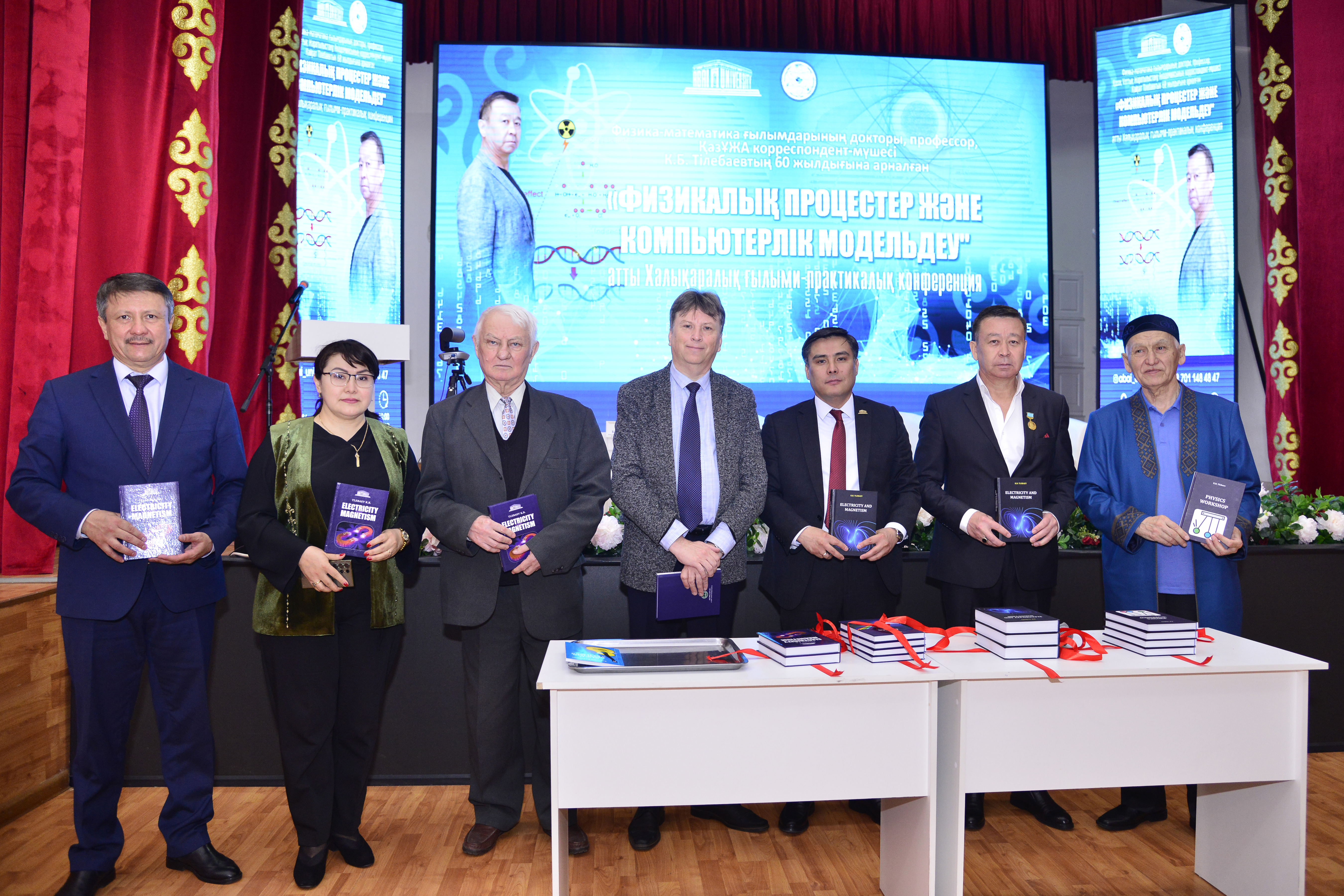Профессор Қайрат Бейшенұлы Тілебаевтың 60 жылдығына арналған «Физикалық процестер және компьютерлік модельдеу» Халықаралық ғылыми-практикалық конференциясы 2024 жылдың 10-11 сәуір аралығында Абай атындағы ҚазҰПУ-да «Физикалық процестер және компьютерлік модельдеу» атты Халықаралық ғылыми-практикалық конференция өтті. Конференция жұмысы теориялық және эксперименттік физика, материалтану және компьютерлік модельдеу атты үш өзекті бағытты қамтыды. Ғылыми баяндамалар қатты денелер мен газдарда болатын физикалық процестерді теориялық және эксперименттік зерттеуге, жаңа композициялық материалдарды алу кезіндегі физикалық процестердің әсерін зерттеуге және физикалық процестерді компьютерлік модельдеуге, АТ-ны оқытуға арналды. Конференция жұмысына Абай атындағы ҚазҰПУ, Әл-Фараби атындағы ҚазҰУ, Х.А.Ясауи атындағы ХҚТУ, М.Х. Дулати атындағы ТарМУ, І.Жансүгірова атындағы Жетісу университеті және Чехия, Франция, Беларусь, Қырғызстан, Өзбекстаннан келген шетелдік ғалымдар, оқытушылар, докторанттар, магистранттар мен студенттер, Ы.Алтынсарин атындағы Ұлттық білім академиясының өкілдері қатысты.