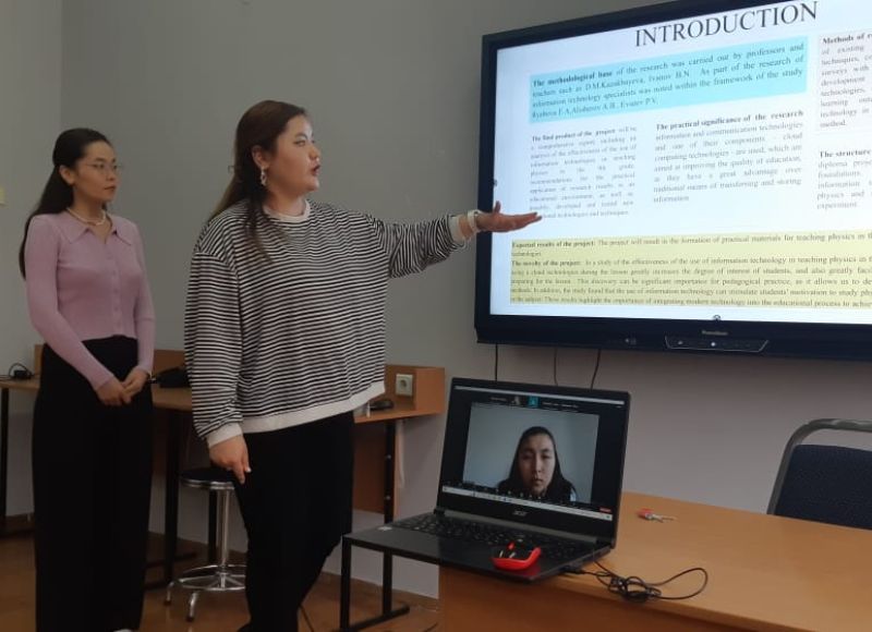 2024 жылдың 15-16 сәуірінде Математика, физика және информатика институты физика кафедрасының «6В05304-Физика», «6В1504-Физика», «6В01505- Физика ағылшын тілінде» БББ 4 курс студенттерінің дипломдық жобалары және «7М05302-Физика» БББ магистранттарының магистрлік жұмыстарының алдын ала қорғауы өтті. Конференция оффлайн және онлайн форматта өтті.