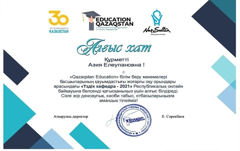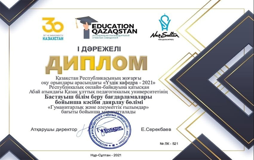 Абай атындағы ҚазҰПУ-дың Кәсіби дайындық бөлімі «Үздік кафедра-2021» конкурсының 1 дәрежелі дипломымен марапатталды
