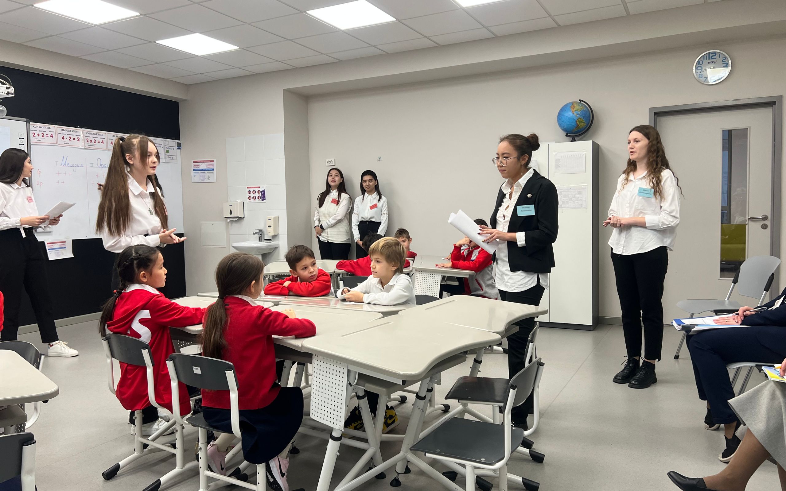 Кіші мектеп оқушыларының академиялық үлгерімі департаментінің директоры Раушан Бекмуратова: Биылғы оқу жылында біз алғаш рет ERASMUS+ бағдарламасы бойынша Жоғары білім беру әлеуетін арттыру (ЕС 618835-EPP-1-2020-1-KZ-EPPKA2-CBHE-SP жүзеге асыру мерзімі: 15.01.2021-14.01.2024) KAZDUAL жобасы аясында NGIntern жобасын аштық. Бастауыш білім беру кафедрасымен (кафедра меңгерушісі Жумабаева Азия) бірлесіп, біз өндірістік оқытудың әртүрлі нысандарын тексеріп көрудеміз. Бүгін біз осындай оқытудың арқасында 1-ші курс студенттерінің оқушылармен өткізген қызықты іс-шарасының куәсі болдық.