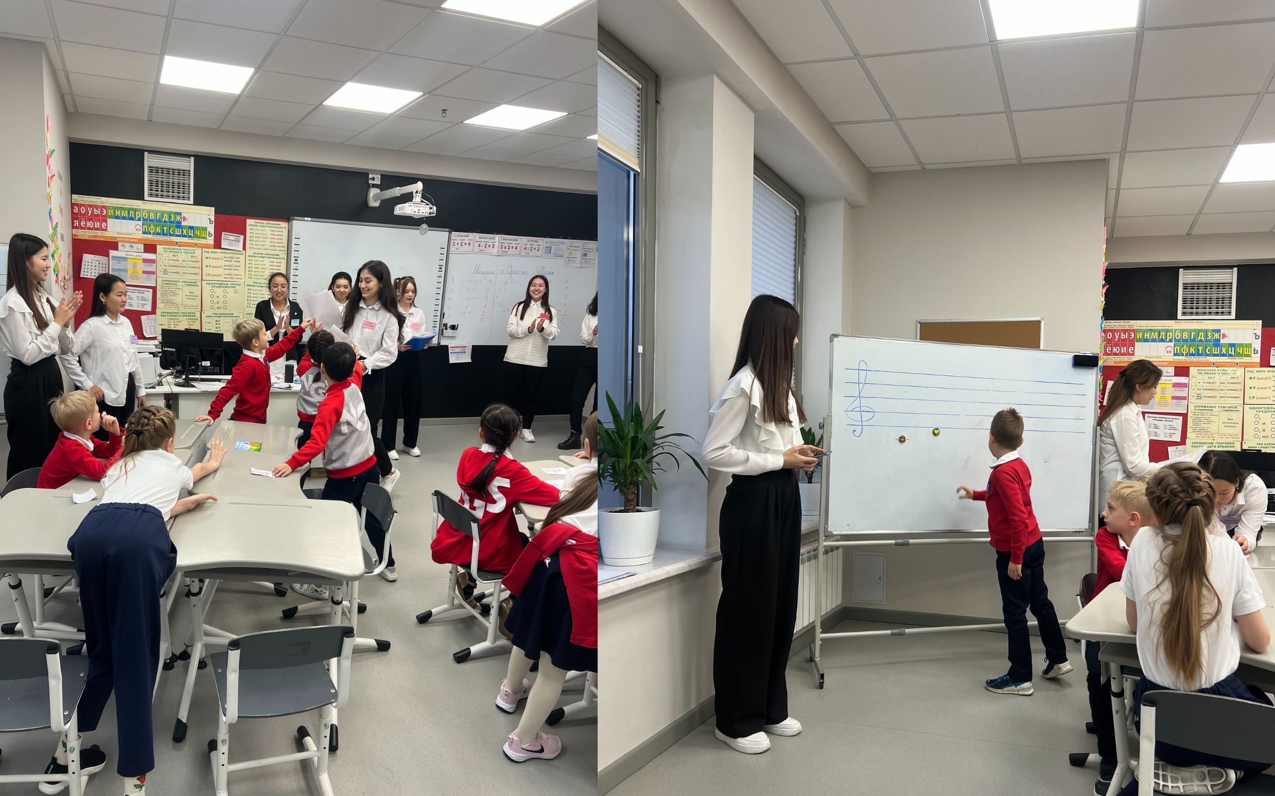 2-сынып оқушысы: Бізде бұрын-соңды осындай ерекше музыка сабағы болған емес. Жас мұғалімдер бізбен бірге ноталарды қайталады, ән айтты, біз ноталардың қай сызықтарға жазылатынын білдік, барлық жұмбақтарды шештік, мульфильдердегі әуендерді анықтадық.