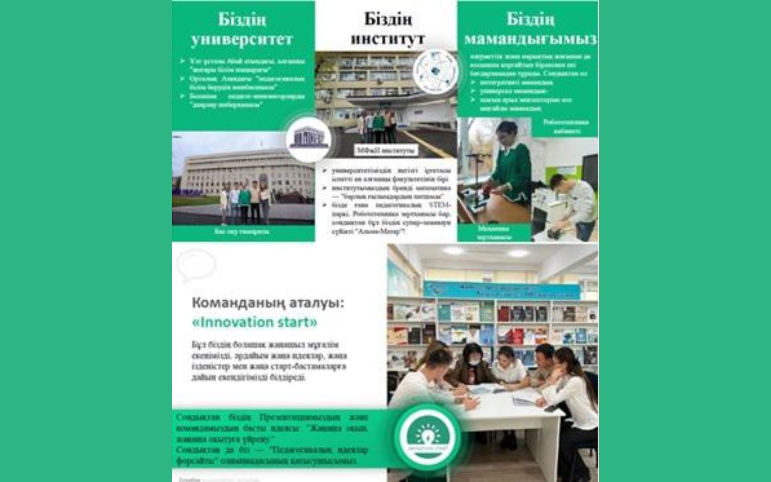 Қазақ тілде оқитын командалар «Innovation start», командасы, 6В01502 - «МФК» мамандығының 2 курс студенттері (ғылыми жетекші: п.ғ.к., доцент Жумашева С.С.), «Shyraq» командасы, «Тарих-география», «Тарих-құқық» мамандықтарының 2 курс студенттері (ғылыми жетекші: п.ғ.д., профессор Саудабаева Г.С.), «Жалын» командасы 6B01513 «Биология» мамандығының 2 курс студенттері (ғылыми жетекші: п.ғ.к., доцент Курсабаев М.К.)