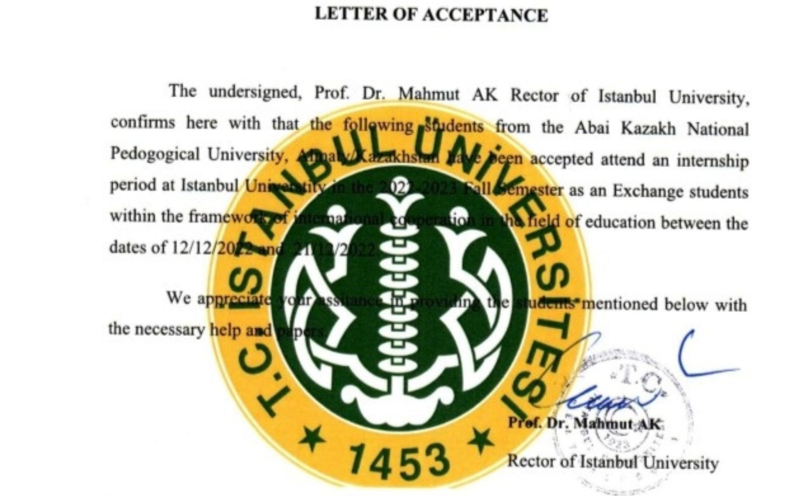Абай атындағы ҚазҰПУ-дың Педагогика және психология институтына қарасты «7М01201-Мектепке дейінгі оқыту және тәрбиелеу» білім бағдарламасының 1 курс магистранттары әлемнің үздік шетелдік жоғары оқу орындарының қатарына кіретін 90 жылдық тарихы бар Istanbul University-інде шетелдік ғылыми тағылымдамадан өтті.