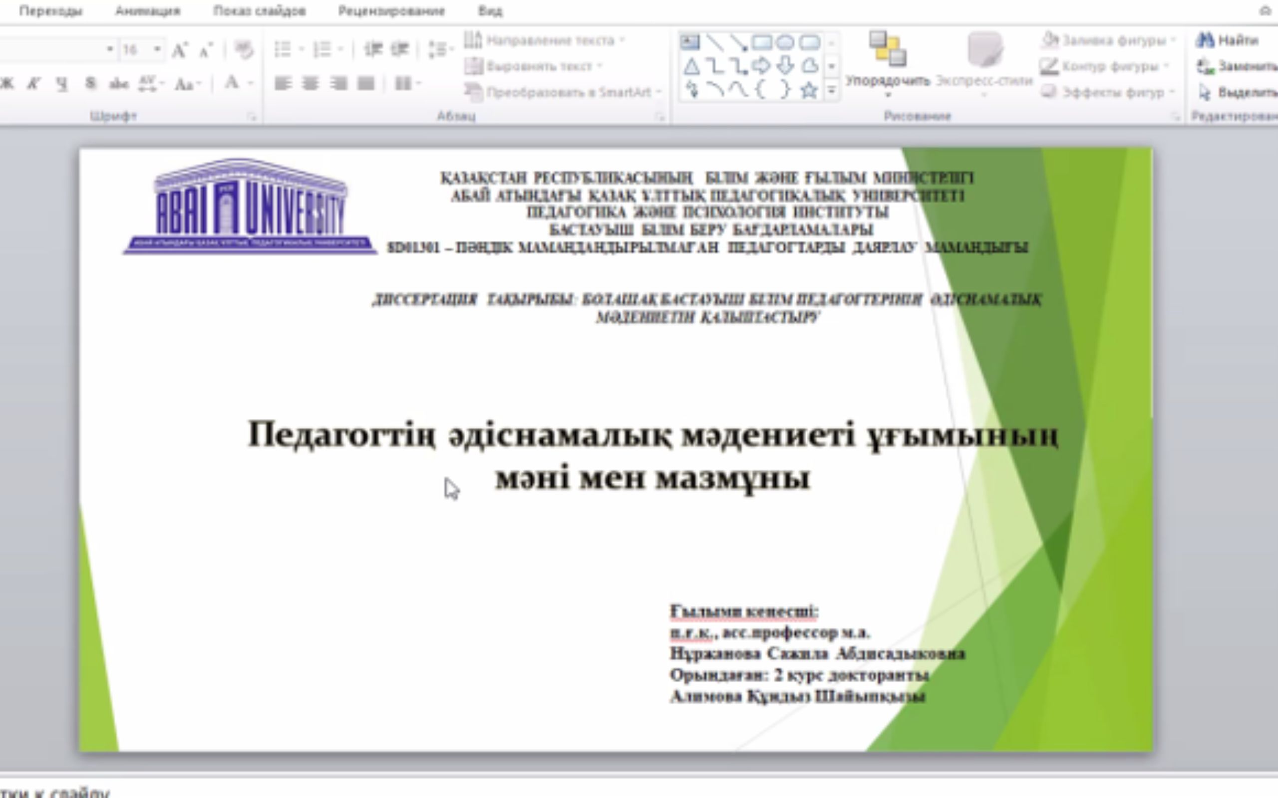 2023 жылғы 18 қаңтарда Педагогика және психология институтының ұйымдастыруымен өткізілген докторанттардың кезекті ғылыми семинар сәтті аяқталды. Семинарда 2-3 курс докторанттары, профессор-оқытушылар құрамы және Йогякарта университетінің (Индонезия) «Ғылыми зерттеу және бағалау» мамандығы бойынша 1 курс докторанты, Абай университетінің «Педагогикалық өлшем» мамандығының магистратура бағдарламасының түлегі Гүлдана Бегимбетова қатысты.