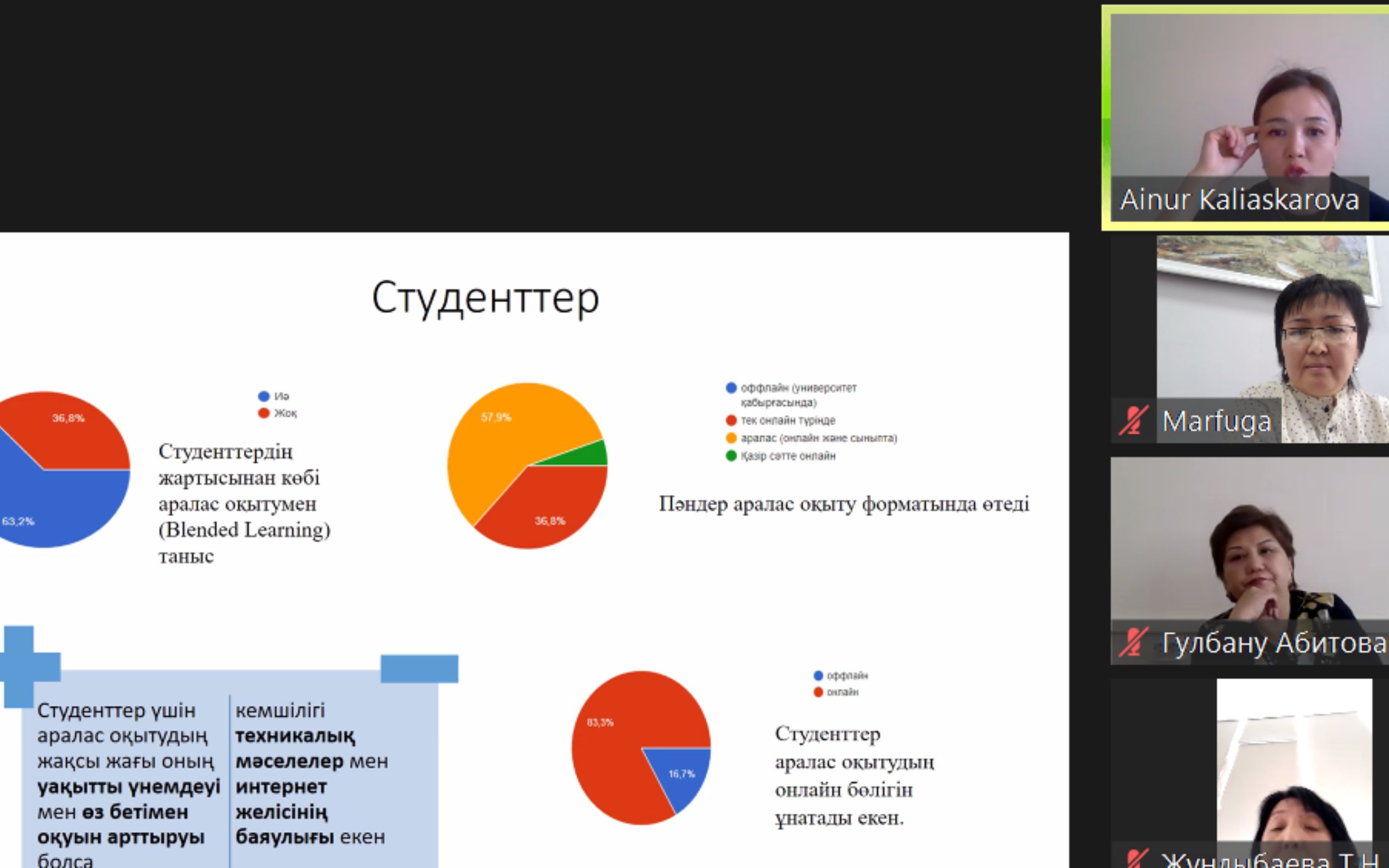 Спикерлердің баяндамалары жоғары деңгейде өтті, бұл семинарға қатысушылардың мазмұнды пікірталастарымен дәлелденді. Семинарға қатысушылар - докторанттар кездесуде көтерілген мәселелер бойынша онлайн дереккөздерді іздеуде өзара тәжірибе алмасып, бір-біріне алға қойылған мақсаттар мен міндеттердің жүзеге асуын тіледі.