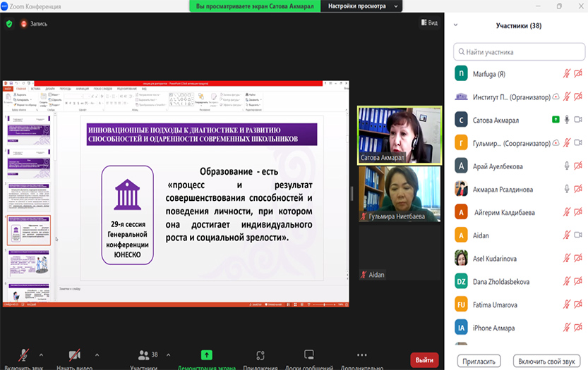 Кездесу соңында Институт директоры, доцент Г.А. Абаева Абай атындағы ҚазҰПУ Басқарма төрағасы, ректор Д.Н.Биляловтың атынан Алғыс хат табыстады. Дәрісхана модераторы, Институттың ғылым жөніндегі директор орынбасары п.ғ.д.,профессор Абсатова М.А. кездесудің нәтижесін түйіндеп, онлайн дәрісхананың жұмысы жалғасатынын жеткізді.