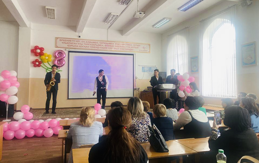Мерекелік кешті институтымыздың Ардагерлер кеңесінің төрағасы,профессор Б.Әлмұхамбетов құттықтау сөзімен ашты. Ары қарай университет профессоры Б.Сайдахметов, доцент М.Құрсабаев, Б.Жанкушков шәкірттерімен бірлесе отырып, аяулы аруларымызға ән шашуларын арнап, әр түрлі музыкалық аспапта ойнап, аяулы ұстаздар мен аруларға көтерінкі көңіл-күй сыйлады.