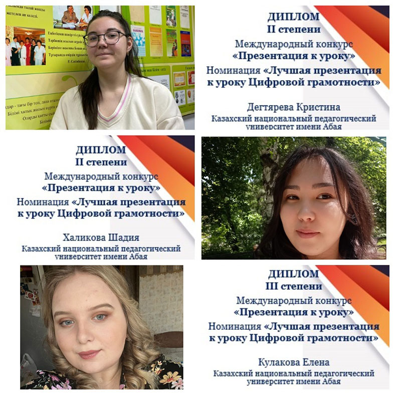 «Цифрлық сауаттылық» пәніне арналған үздік тұсаукесер» номинациясы бойынша: 1 орын - Ципринская Александра, Турсынбек Айым (Абай атындағы Қазақ ұлттық педагогикалық университеті). 2 орын - Поникарова Маргарита, Халикова Шадия, Дегтярева Кристина (Абай атындағы Қазақ ұлттық педагогикалық университеті). 3 орын - Горчакова Ника, Кулакова Елена, Попандопуло Марина (Абай атындағы Қазақ ұлттық педагогикалық университеті). «Көркем еңбек» пәні бойынша үздік тұсаукесер» номинациясы бойынша: 1 орын - Толаматова Динора (Қазақ қыздар ұлттық педагогикалық университеті). 2 орын - Кандаева Нажибат (Дағыстан мемлекеттік педагогикалық университеті). 3 орын - Павленина Елена, Фотина Анастасия (Пермь мемлекеттік гуманитарлық-педагогикалық университеті).
