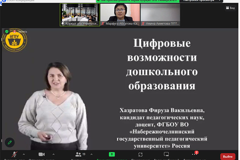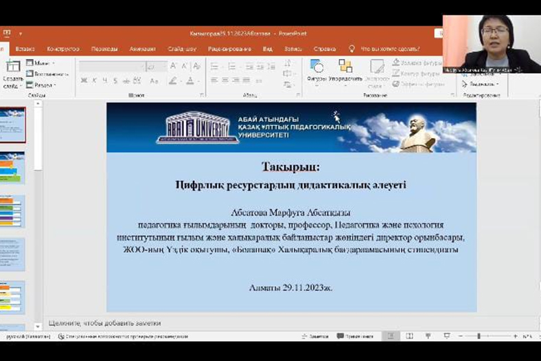 Профессор Абсатова Марфуга өз сөзінде тұтас педагогикалық үдерісте цифрлық ресурстарды іске асырудың жеке тәжірибесімен бөлісті, jamboard, Padlet, Google.Forms, Mentimeter.com, miro және сол сияқты бақа да ресурстардың мүмкіндіктерін ашты.