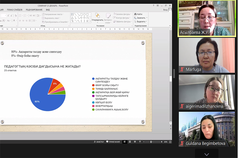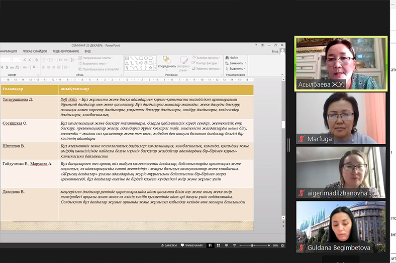 2023 жылы 06 желтоқсан күні Педагогика және психология институтының ұйымдастыруымен өткізілген докторанттардың ғылыми семинары нәтижелі өтті. Семинарға институттың профессор-оқытушылар құрамы, докторанттар және Джогякарта мемлекеттік университеті (UNY) Индонезия, ғылыми зеттеу және бағалау мамандығының докторанты Бегимбетова Г. қатысты.