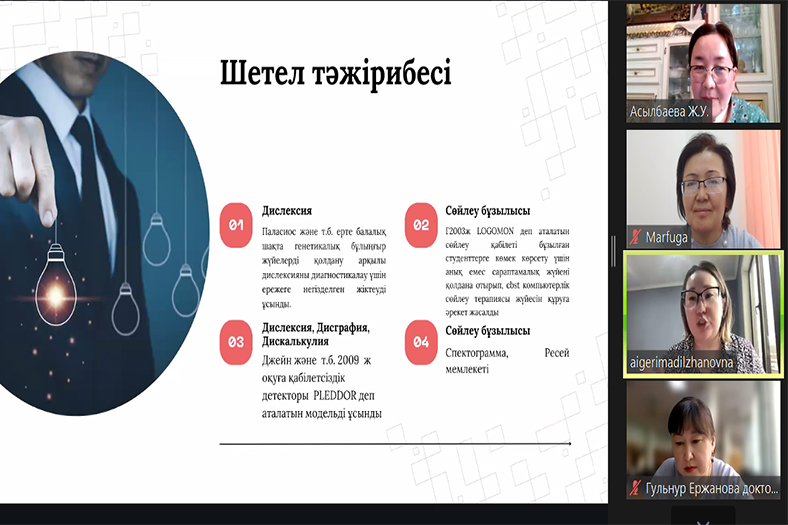 Мектепке дейінгі білім беру кафедрасының меңгерушісі Қияқбаева Ұ., арнайы педагогика кафедрасының доцент м.а. Бекбауова З. докторанттарға зерттеу жұмыстары төңірегінде сұрақ қойып, құнды ұсыныстарымен бөлісті.