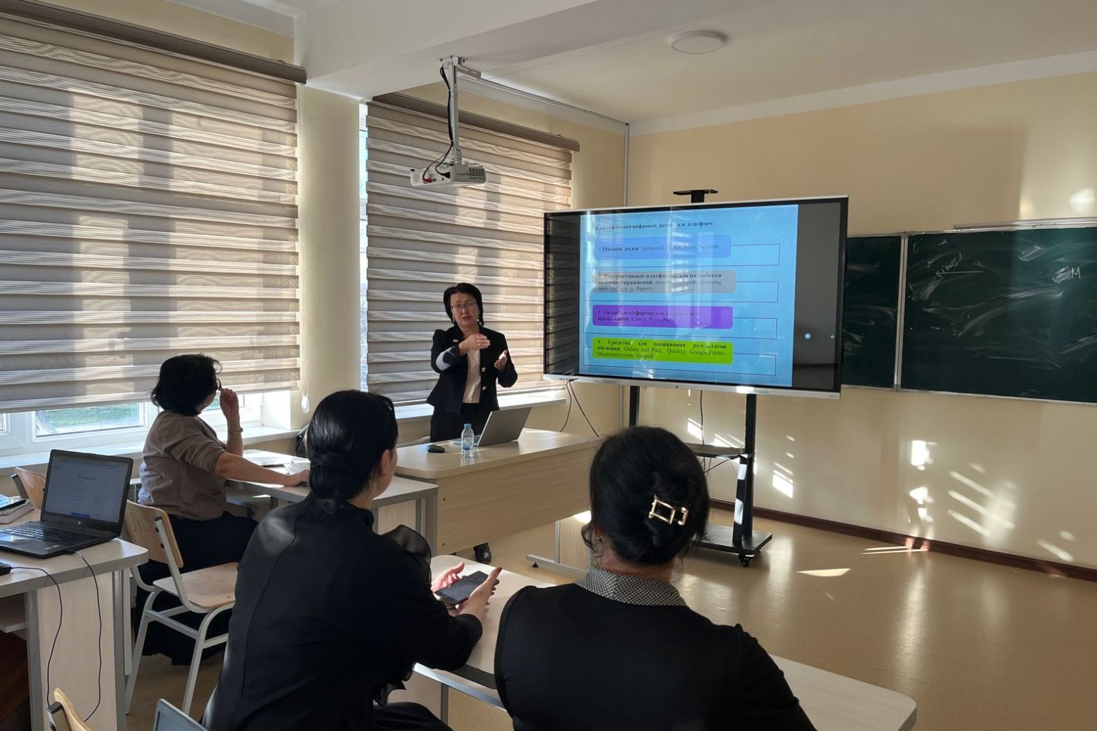 «Ғылыми зерттеу әдіснамасы» курсы аясында профессор магистранттарды білім берудегі заманауи әдіснамалық тәсілдермен таныстырды және диагностикалық әдістемелерді (сауалнамалар) әзірлеудегі цифрлық ресурстар: Online test Pad, Quizizz, Google.Формалар, Mentimeter.com, Simpoll негізінде экспериментті іске асыру бойынша практикалық жұмыс жүргізді.