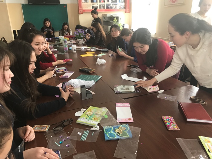 2018 жылдың 3 наурыз күні «Лидер» студенттер үйірмесінің жетекшісі аға оқытушы, Ph.D Анар Алимбекова 8-наурыз Халықаралық әйелдер күніне арналған «Арт терапиясындағы - биссермен жұмыс әдісі» тақырыбында шеберлік сыныбын өткізді.