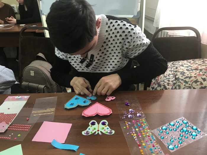 Шебер сыныптың теорялық бөлімінде студенттерге арт терапия туралы презентация көрсетіліп, түсіндіру жұмыстарынан кейін тәжирбелік бөлімінде студентер екі топқа бөлініп, бөлек аудиторияға отырғызылды. Арт-терапияның талаптарына сәйкес қатысатын адамдардың саны 10-нан аспаған дұрыс, дегенмен шеберлік сыныпқа қызығушылық танытып, қатысам деушілердің санының көптігінен топ құрамы 20 студенттен құралды. Шеберлік сынып барысында пайдалы біліммен қатар, студенттер 4 сағат бойы бір-бірімен жақсы пікірлермен алмасып, түрлі жағымды әсер алды.