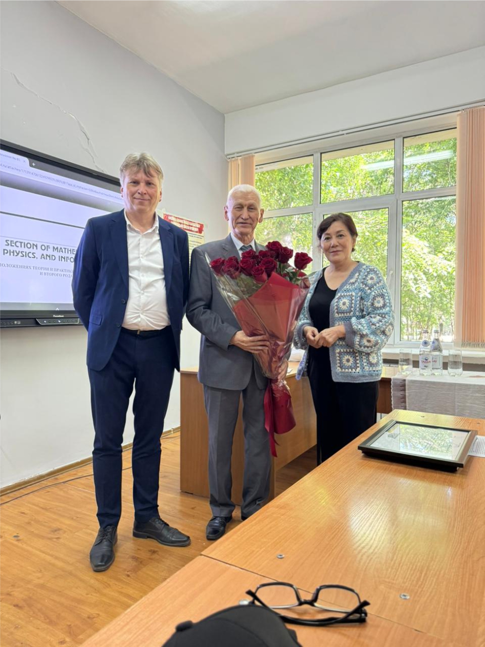 2024 жылдың 28 мамыр күні сағат 10.00-де физика кафедрасының атақты ғалым, көрнекті ұстаз техника ғылымдарының докторы, физика профессоры, Ресей жаратылыстану Академиясының академигі, Қазақстан Республикасының ғылым, техника және білім беру саласындағы мемлекеттік сыйлықтың лауреаты Құлбек М.Құлбекұлының 75-жылдық мерейлі жасына арналған кеңейтілген мәжілісі, соңынан ғылыми семинары өтті. Семинарда профессор М.Құлбекұлы «Бірінші және екінші текті фазалық түрленулер теориясы мен практикасының өзекті мәселелері» тақырыбына ғылыми баяндама жасап, қызу пікірталас жасалды. Профессор М.Құлбекұлының еліміздің жоғары білімі мен ғылымына сіңірген зор еңбектерін ескеріп кәсіподақ тарапынан көңіл бөлініп, өз кезегінде алғыс хатын ректор атынан құттықтау қағазы жіберілді
