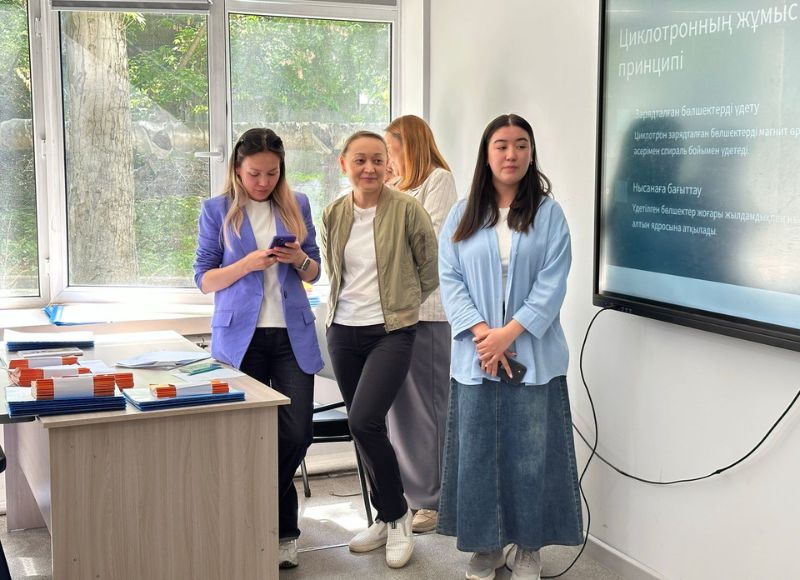 Ядролық физика институтына жіберілген студенттер циклотрон мен ғарыштық сәулелерді тіркеу детекторларынан алынған деректер жиынын өңдеу бойынша зертханаларда жұмыс істеуге мүмкіндік алды.