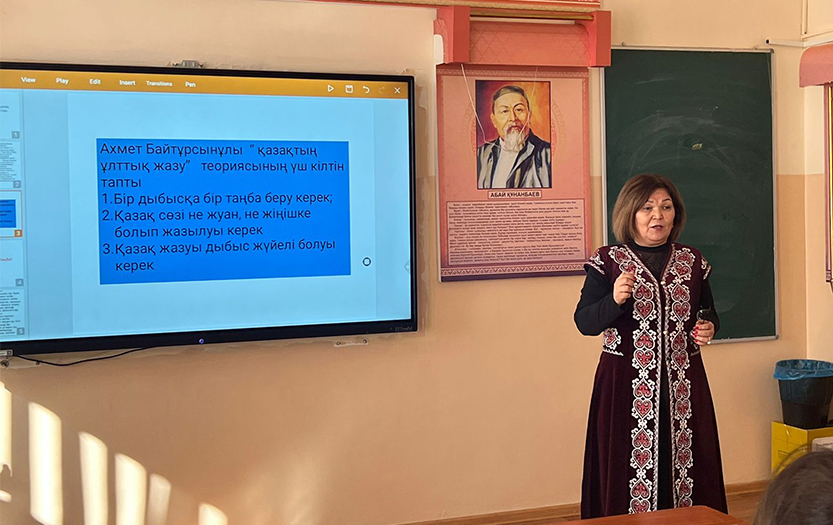 Аға оқытушы Сейталиева Қ. «Латынәліпбилі әдістаным пәнінің нормативтік ұстанымдары» тақырыбын баяндау барысында пәннің силлабусымен таныстырып, тапсырмалар мен кешенді жұмыстардың үлгісін көрсетті. Шара барысын С.Қирабаев атындағы Қазақ тілі мен әдебиеті кафедрасының профессор-оқытушылары Қоқанова Ж., мен Рауандина А. Қ. жалғастырды.