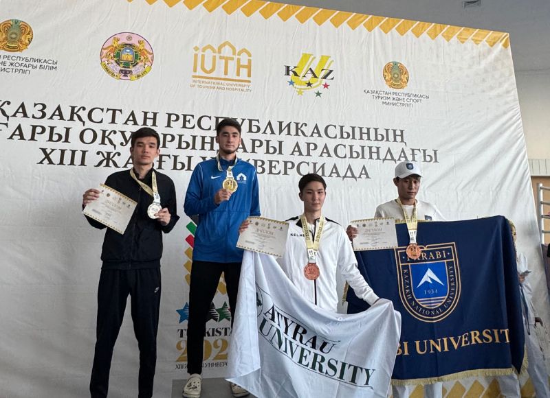 Еліміздің жоғары оқу орындарынан 24 команда қатысқан Универсиадада Алдияр Көмекбай 68 келі салмақ дәрежесінде ІІ орынға ие болса, Айман Ительгиева 73 келі салмақ дәрежесінде ІІІ орынға жайғасты.