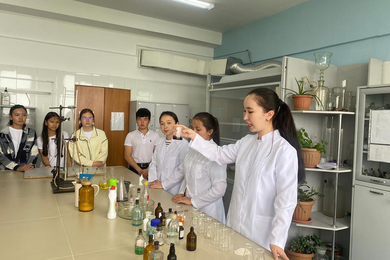 Оқушылар оқу лабораторияларын аралап, кафедраларға экскурсия жасады. Мектеп оқушылары институттың жаңадан жабдықталған географиялық ақпараттық жүйе (ГАЖ) кабинеті мен химия, биология кафедраларының оқу зертханаларымен танысты. Институт студенттері қызықты химиялық тәжірибелер көрсетті. Оқушылардың сұрақтарына жауап беріп, пікір алмасты.