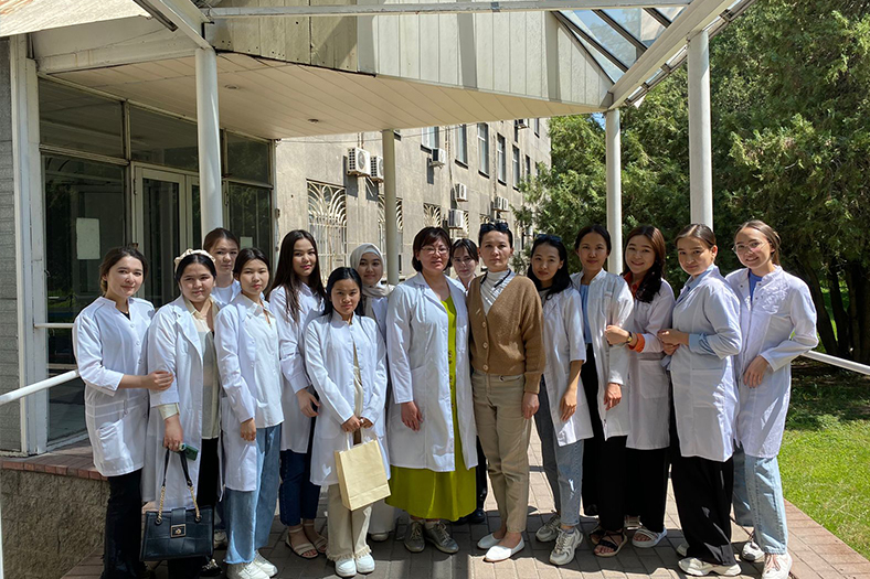 Практиканың алғашқы күні институтқа экскурсия жасалды. Институт мекемесі 1999 жылы профессор, ҚазССР Мемлекеттік сыйлығының лауреаты Сарқыт Кудайбергеновтің бастамасымен құрылған. Институттың негізгі қызметі полимерлердің химия және физика саласы бойынша іргелі және қолданбалы зерттеулерді жүргізу, ғылыми нәтижелерді өндіріске. Бұл жайында аға ғылыми қызметкер Гүлнұр Татыханова түсіндірді.