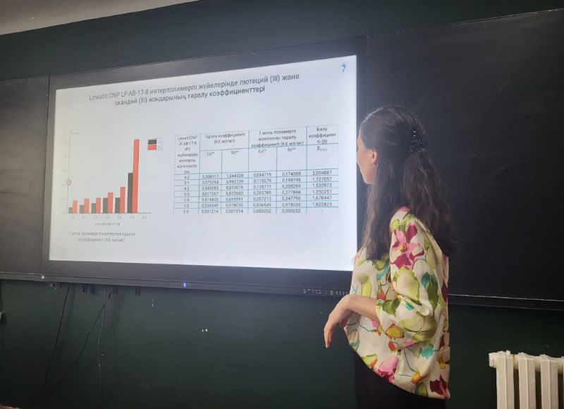 Химия кафедрасының кеңейтілген отырысы өтті 2024 жылдың 20 мамырында Абай атындағы Қазақ ұлттық педагогикалық университетінің жаратылыстану және география факультеті «Химия» кафедрасының кеңейтілген отырысында Химэрсэн Хуангулдің «8D05301-Химия» білім беру бағдарламасы бойынша философия докторы (PhD) ғылыми дәрежесін алу үшін жазған «Технологиялық ерітінділерден скандийді бөліп алу үшін жоғары сұрыпты заманауи сорбенттер құру» тақырыбы бойынша диссертациялық жұмысы талқыланды.