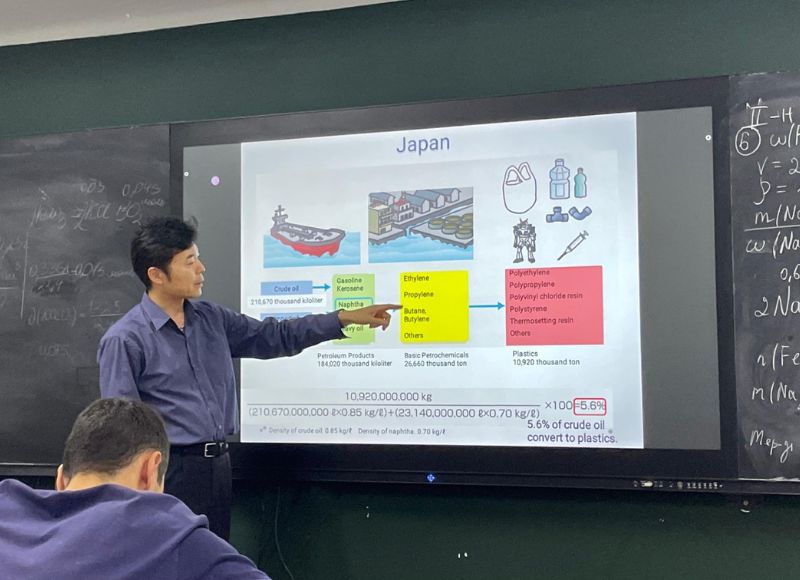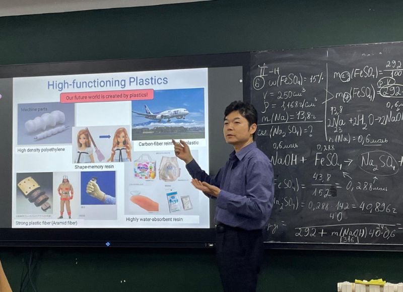 Окаяма университетінің профессоры Хироки Фуджидің семинары 2024 жылдың 3 қазанында Абай атындағы ҚазҰПУ химия кафедрасында Окаяма университетінің профессоры Хироки Фуджи (Жанопия) «Химия» мамандығының магистранттары мен докторанттарына ашық дәріс оқыды. Дәріс «Plastics and modern society» тақырыбында өтті. Ашық дәрісте профессор Х.Фуджи пластиктер тақырыбына арналған сабақ жоспарымен және оқу материалымен таныстырды. Сондай-ақ профессор пластиктердің қоғамға әсерін талдап, олардың қоршаған ортаға берер зиянын нақты мысалдармен түсіндірді. Дәріс барысында күнделікті өмірде қолданатын материалдарға қайта өмір беруге арналған «Refuse, reduce, reuse, recycle» әдісіне тоқталды. Пластиктерді қайта өңдеудің негізгі үш жолын және оны өндірудің жаңа әдісімен бөлісті. Дәріс соңында қатысушылар профессормен сұрақ жауап алмасып, ашық талқылау өткізді.