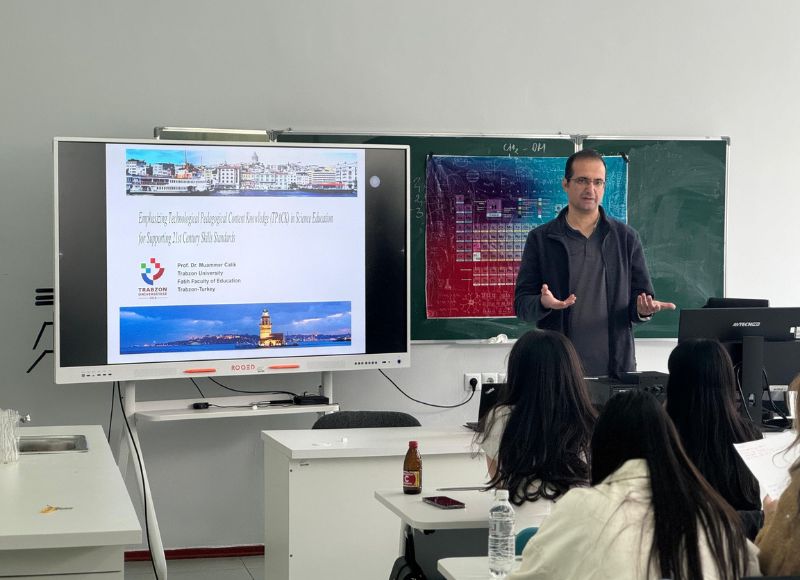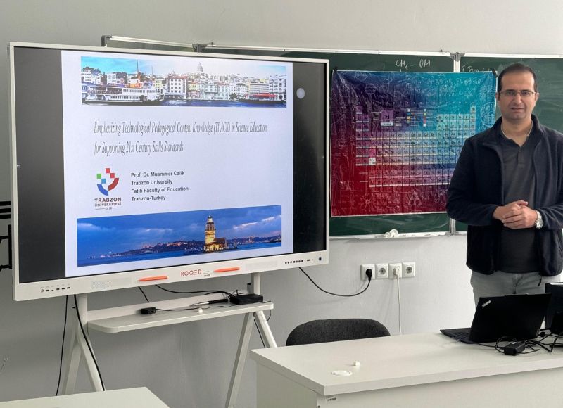 Ғылыми білім берудегі АКТ – жарқын болашақтың кілті 2024 жылдың 4 қарашасында Абай атындағы ҚазҰПУ химия кафедрасының жоғары курс студенттеріне Трабзон университетінің профессоры (Түркия) Муаммер Чалих «Ғылыми білім берудегі ақпараттық-коммуникациялық технологиялардың (АКТ) рөлі» тақырыбында дәріс оқыды.