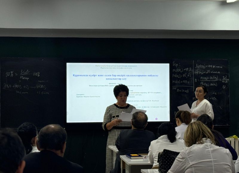 Химия кафедрасының кеңейтілген отырысы өтті 2024 жылдың 30 қазанында Абай атындағы ҚазҰПУ Жаратылыстану және география факультеті химия кафедрасының кеңейтілген отырысында Жұбаныс Мадина Қанжігітқызының «6D060600-Химия» білім беру бағдарламасы бойынша философия докторы (PhD) ғылыми дәрежесін алу үшін жазған «Құрамында күкірт және селен бар өндіріс қалдықтарынан пайдалы қосылыстар алу» тақырыбы бойынша диссертация тақырыбының өзектілігі талқыланды.