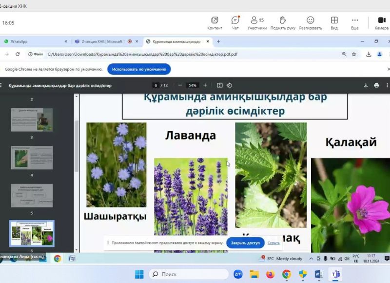 Барлық қатысушылардың баяндамалары олардың жас ерекшеліктеріне қарамастан, өз зерттеулерінің нәтижелеріне негізделген және жоғары ғылыми деңгейде ұсынылған. Конференцияға қатысушылар барлық сұрақтарға толық жауап беріп, пікірталас қызықты әрі мазмұнды болды. Конференция соңында химия кафедрасының профессор-оқытушылары қатысушыларға алғыстарын білдірді.