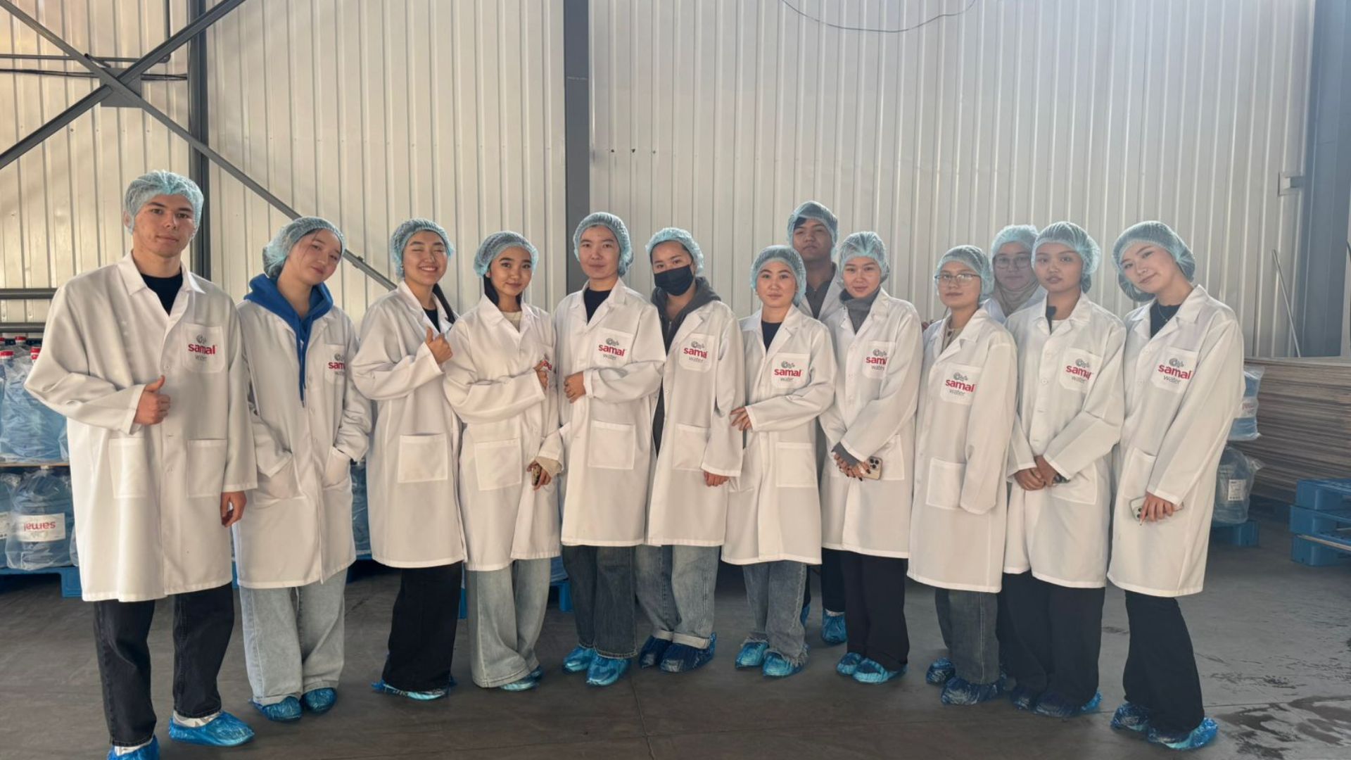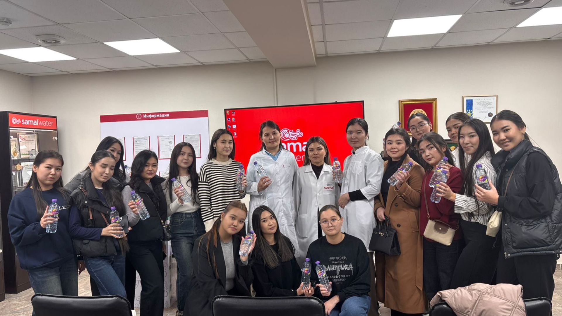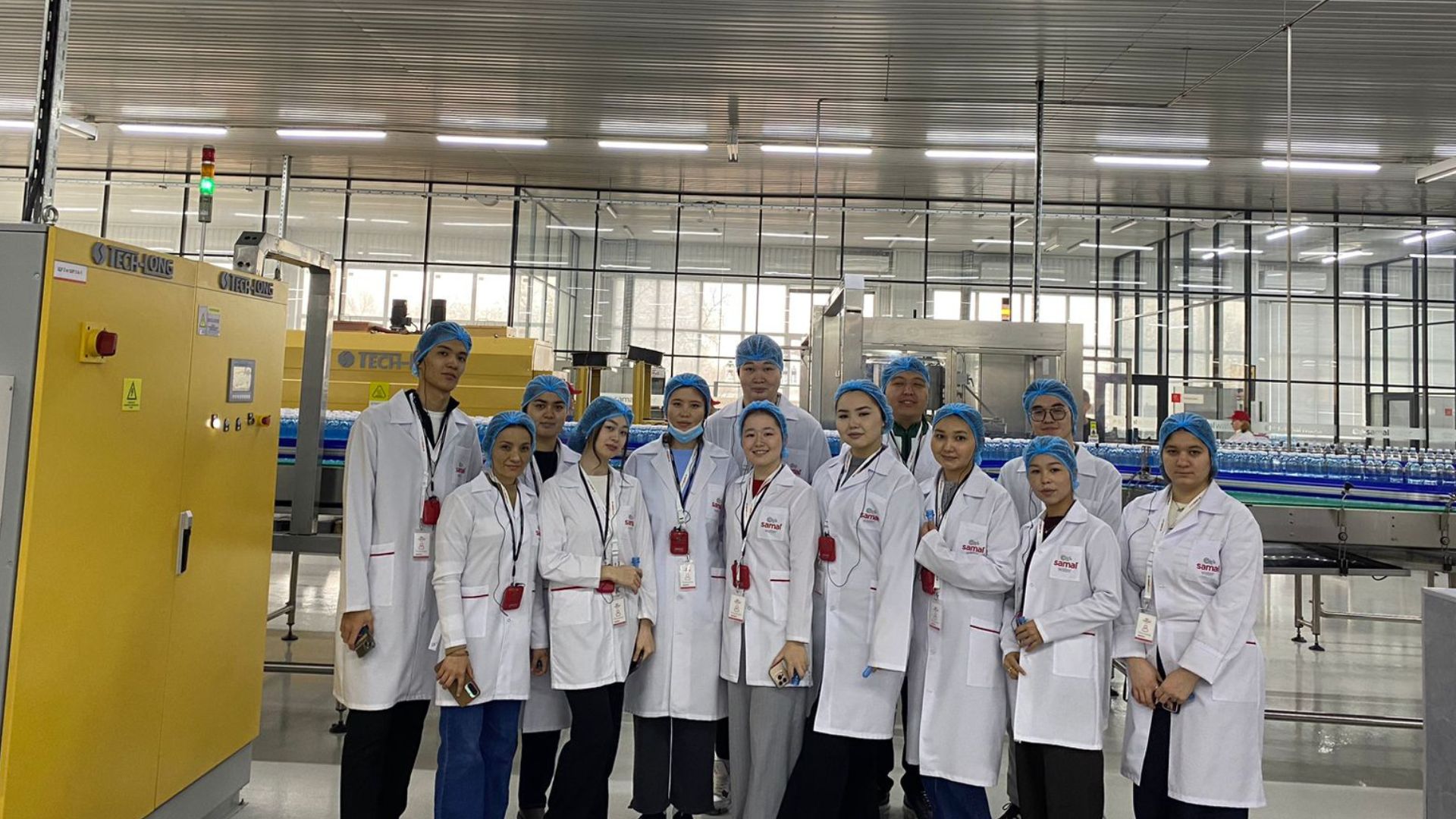 Тұрақты даму мақсаттары аясында кәсіби құзыреттілікті қалыптастыру 2025 жылдың 13-14 қараша күндері «Химия» кафедрасының PhD, аға оқытушысы Узакова А.Б., 2 курс магистранттары Қанапаш Л., Базарбай Б. жетекшілігімен 6В05301-Химия, 6В01512 – Химия-Биология мамандығының 1 және 3 курс, 3, 4 топ студенттері «Samal Water» кәсіпорнының 2-ші жаңа филиалына танымдық экскурсия жасап қайтты. Экскурсияның негізгі мақсаты – студенттердің химия мамандығына қызығушылығын арттыру, теориялық білімдерін практикамен ұштастыра отырып, табиғи суды тазарту және құю технологияларымен, өндірістегі химиялық және экологиялық бақылау әдістерімен таныстыру болды. Бұл іс-шара БҰҰ-ның Тұрақты даму мақсаттарымен, әсіресе ТДМ 6 – Таза су мен санитария, ТДМ 9 – Инновациялар мен инфрақұрылымды дамыту, ТДМ 12 – Тұрақты тұтыну мен өндіріс бағыттарымен үйлесімді өтті. Экскурсия барысында студенттер су өндірісінің толық технологиялық циклі туралы жан-жақты мәліметтер алды. Атап айтқанда, ПЭТ бөтелкелерінің жасалуы, судың рН деңгейінің фильтрацияға дейінгі және кейінгі көрсеткіштерін өлшеу, ұңғымадағы су қаншалықты тереңде, судың ішуге дайын болғанын анықтаудың ғылыми критерийлері түсіндірілді. Олар өздерін қызықтырған сұрақтарын қойып, өндіріс процесін тұрақты даму тұрғысынан бағалау мүмкіндігін алды. Студенттер бұл сапардың болашақ мамандықтары үшін құнды тәжірибе болғанын атап өтті. Экскурсия оларды экологиялық жауапкершілікке, ресурстарды тиімді пайдалануға және жасыл технологияларға бағытталған өндірістік мәдениетті түсінуге ынталандырды.