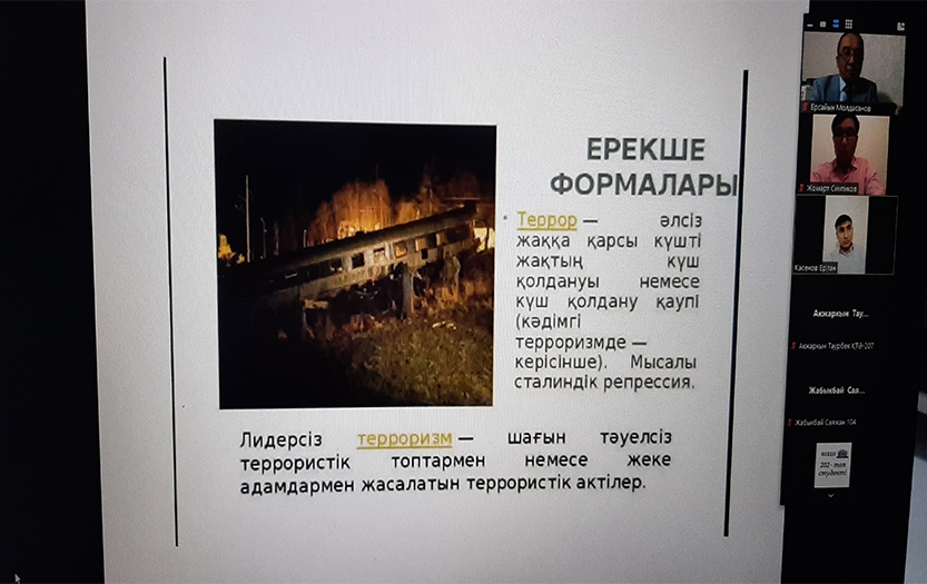 Абай атындағы ҚазҰПУ-да Филология және көптілді білім беру институтының академик С.Кирабаев атындағы қазақ тілі мен әдебиеті кафедрасы 2021 жылдың 25 қазанында «Діни экстремизм мен терроризмнің алдын алу» тақырыбында 1-4 курстың 250-ден астам студенттері мен эдвайзерлердің қатысуымен онлайн-вебинар өткізді.