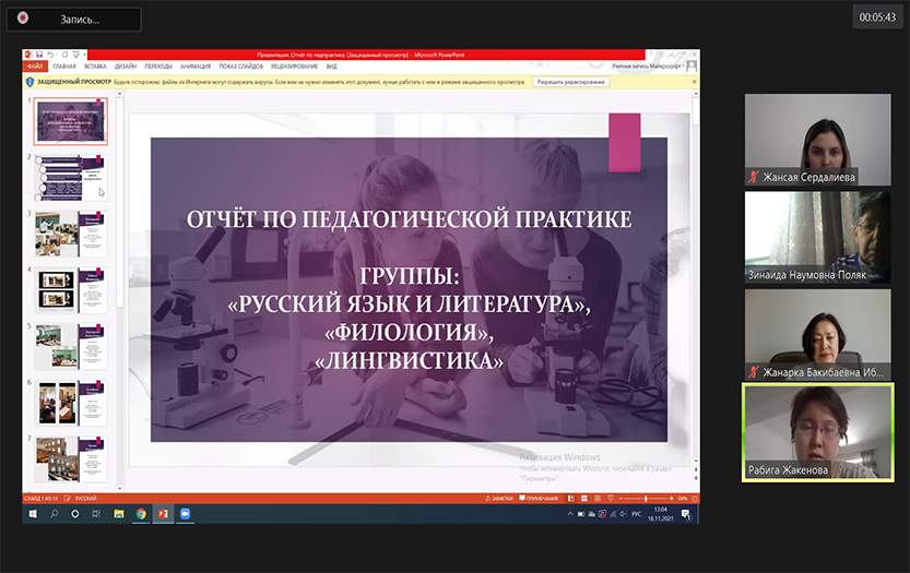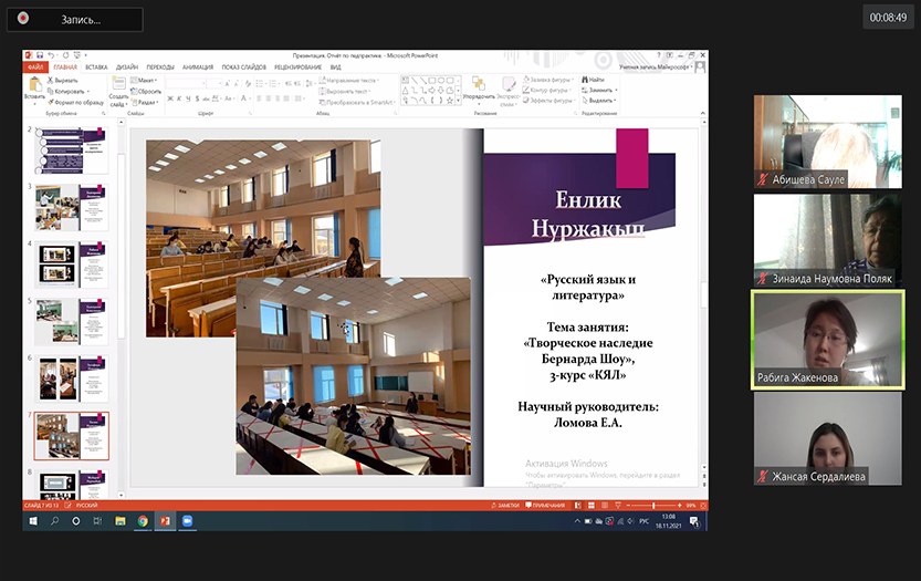 2021 жылдың 18 қарашасында Филология және көптілді білім беру институтының орыс тілі мен әдебиеті кафедрасында 2 курс магистранттарының педагогикалық практикасы бойынша қорытынды конференция өтті.